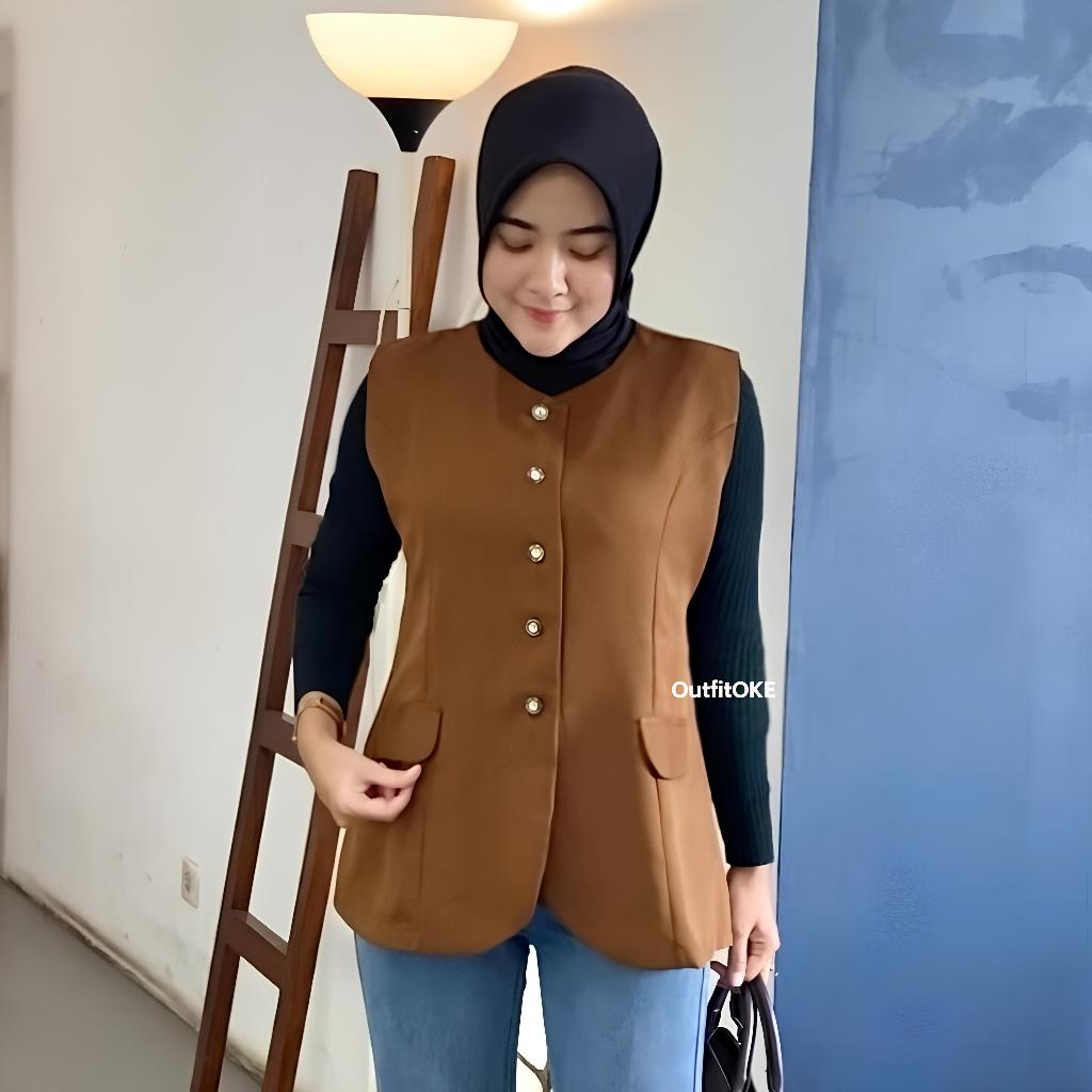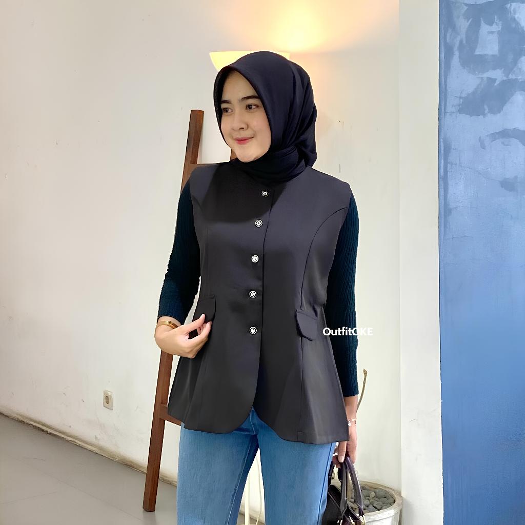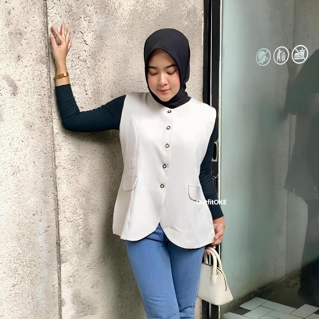 BIANCA VEST OUTER ROMPI BLAZER WANITA - SLEEVELESS T0P - CARDIGAN OUTERWEAR BASIC KOREAN STYLE