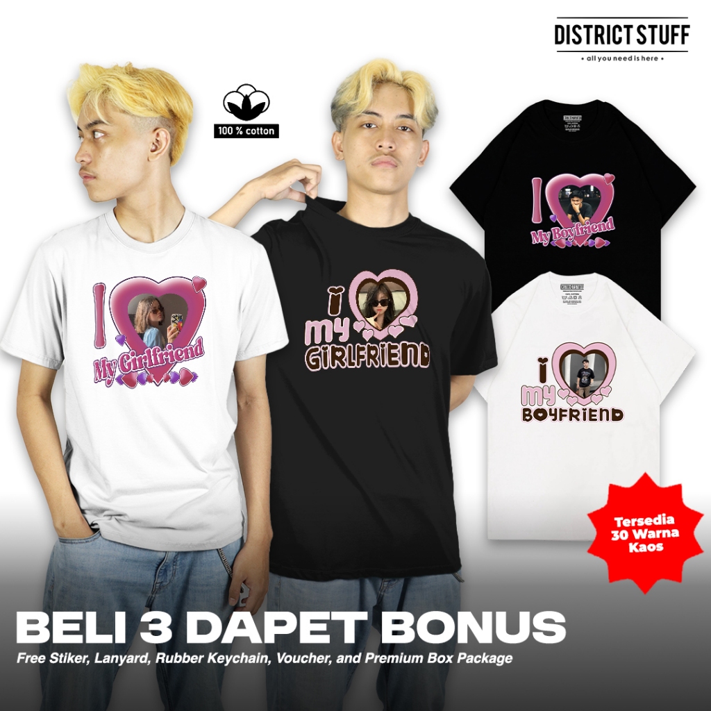 KAOS SABLON CUSTOM FOTO BUCIN LOVE MY GIRLFRIEND PRIA WANITA BAJU COUPLE PASANGAN