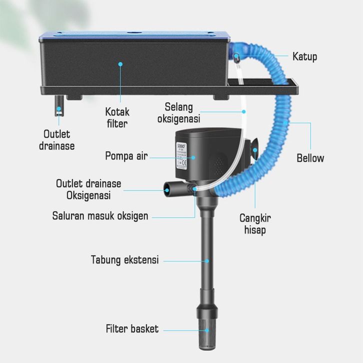Top Filter Aquarium 3 In 1 Box Besar Dengan Pompa Lengkap