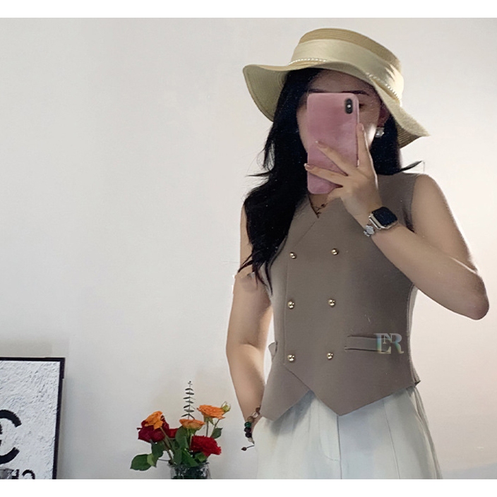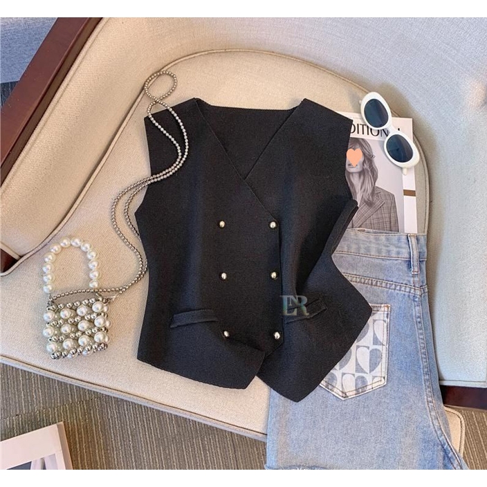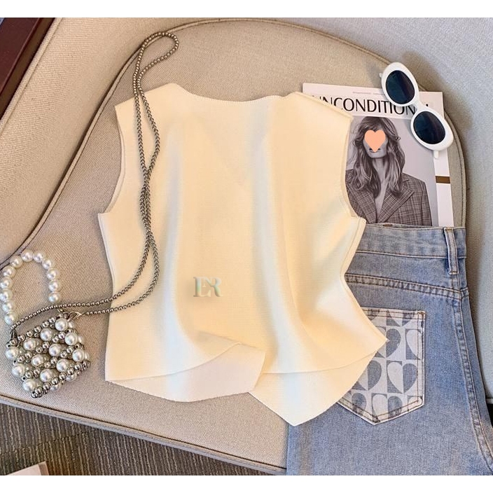LNR SHOP ATASAN VEST ROMPI RAJUT FULL KANCING BAHAN HALUS LEMBUT UNTUK PEREMPUAN TANPA LENGAN IMPORT BASIC ELEGANT KAOS BLOUSE VINTAGE KNIT SANTAI JALAN KASUAL CASUAL CROP TANK T0P
