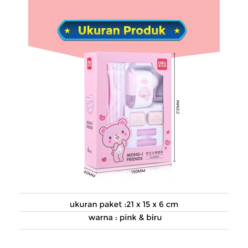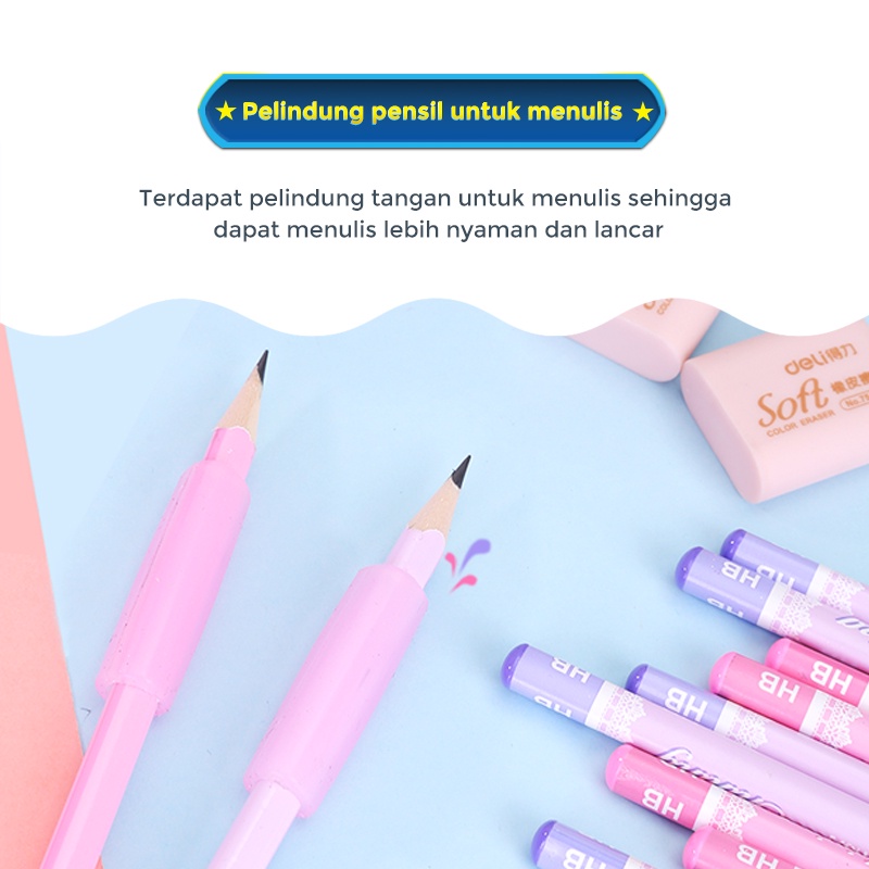 Deli Stationery set 4 in 1 rautan pensil 12pcs pensil 2 penghapus dan 2 penutup pena 68896