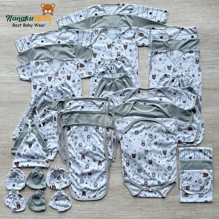 Murah Nanaku Baby - Set Lengkap Isi 36 PCS Paket Hemat Set Kado Baju Celana Bayi Baru Lahir Usia 0-3 Bulan Keren