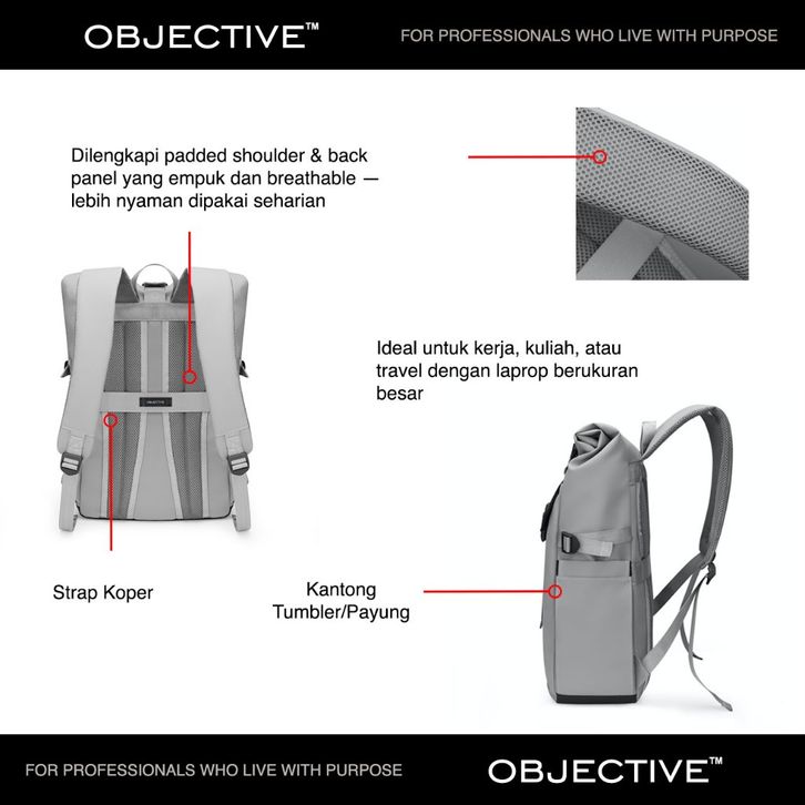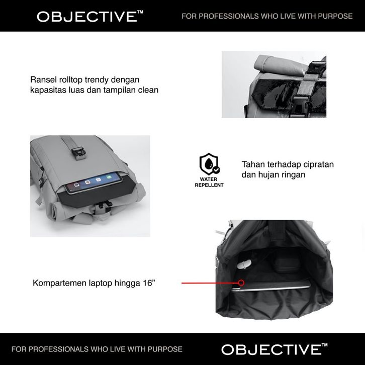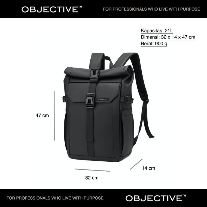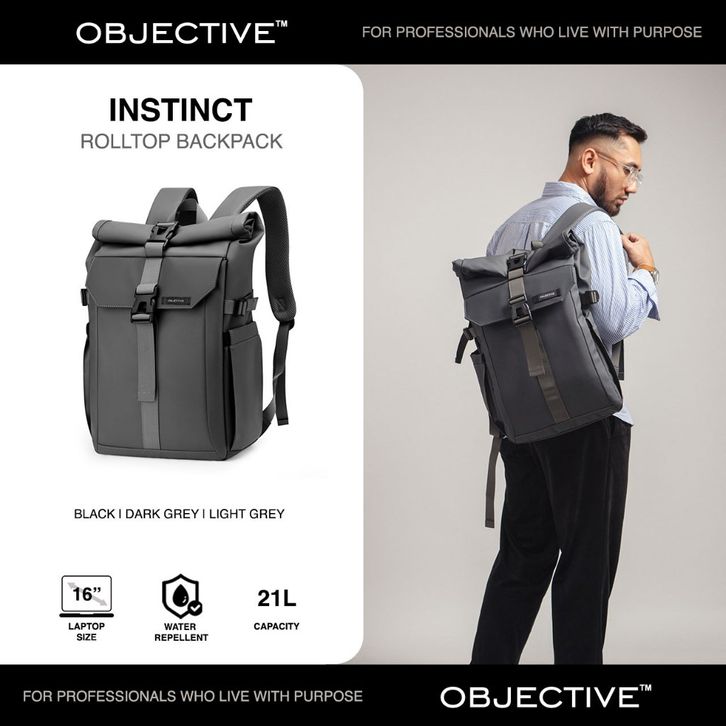 PREMIUM OBJECTIVE - Tas Ransel Rolltop Waterproof dengan Rain Cover Pria Wanita 21L | INSTINCT Backpack | Tas