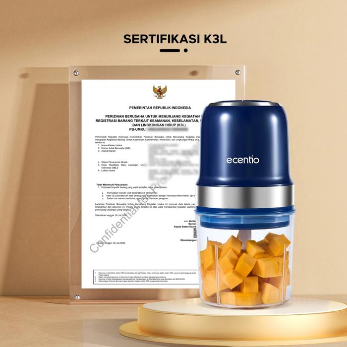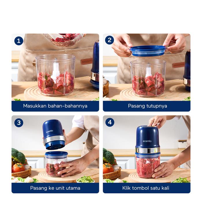 Ecentio Mini Chopper 800ml Multi-Fungsi Portable Blender Penghancuran 10 Detik 2 Pengaturan Kecepatan BPA Free