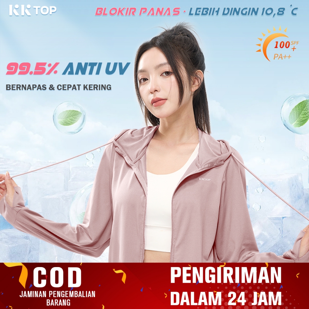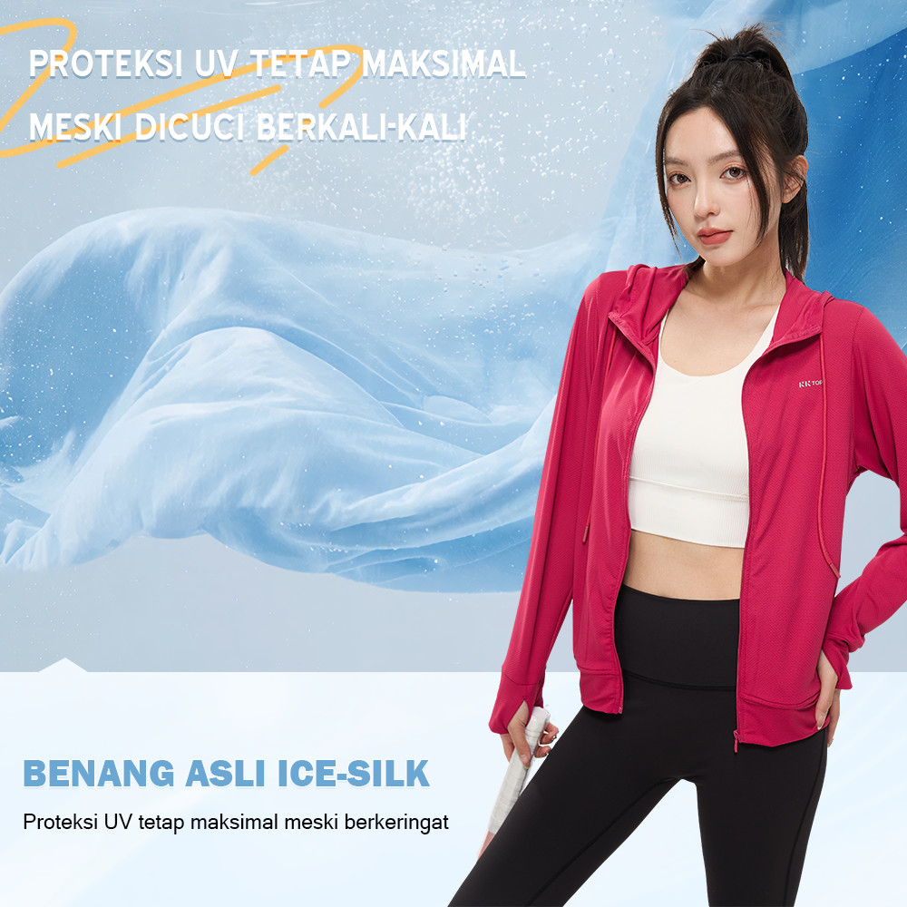 KKTOP JAKET ANTI UV - WANITA MESH HOODIE KORDAS, RITSLETING PENUH (J010)