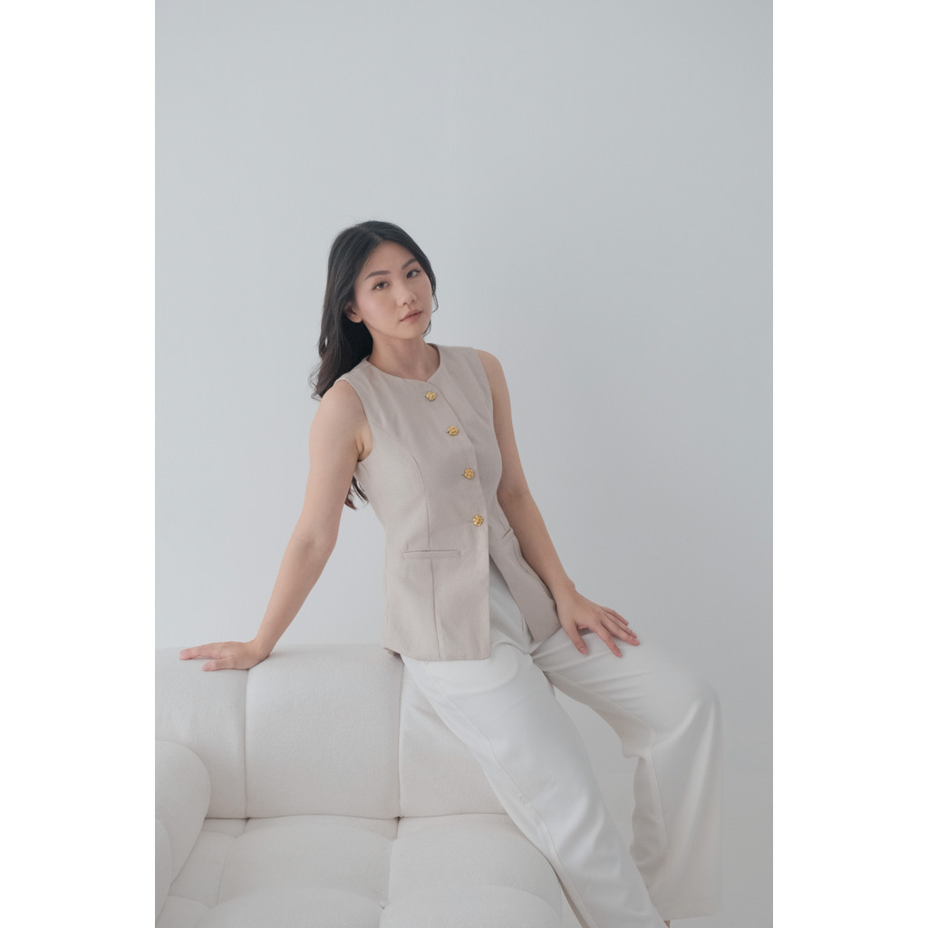 HAZEL STEPHANIE TWEED VEST | VEST WANITA KOREA | ROMPI WANITA | ATASAN WANITA