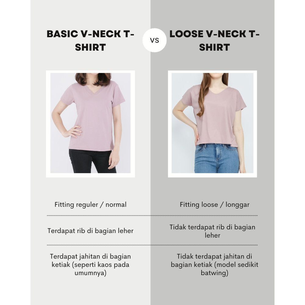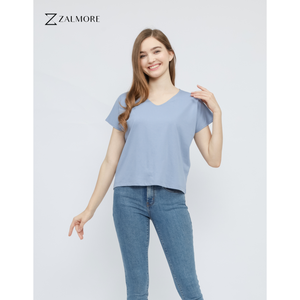 ZALMORE WOMEN VNECK LOOSE T-SHIRT PREMIUM COTTON - KAOS WANITA