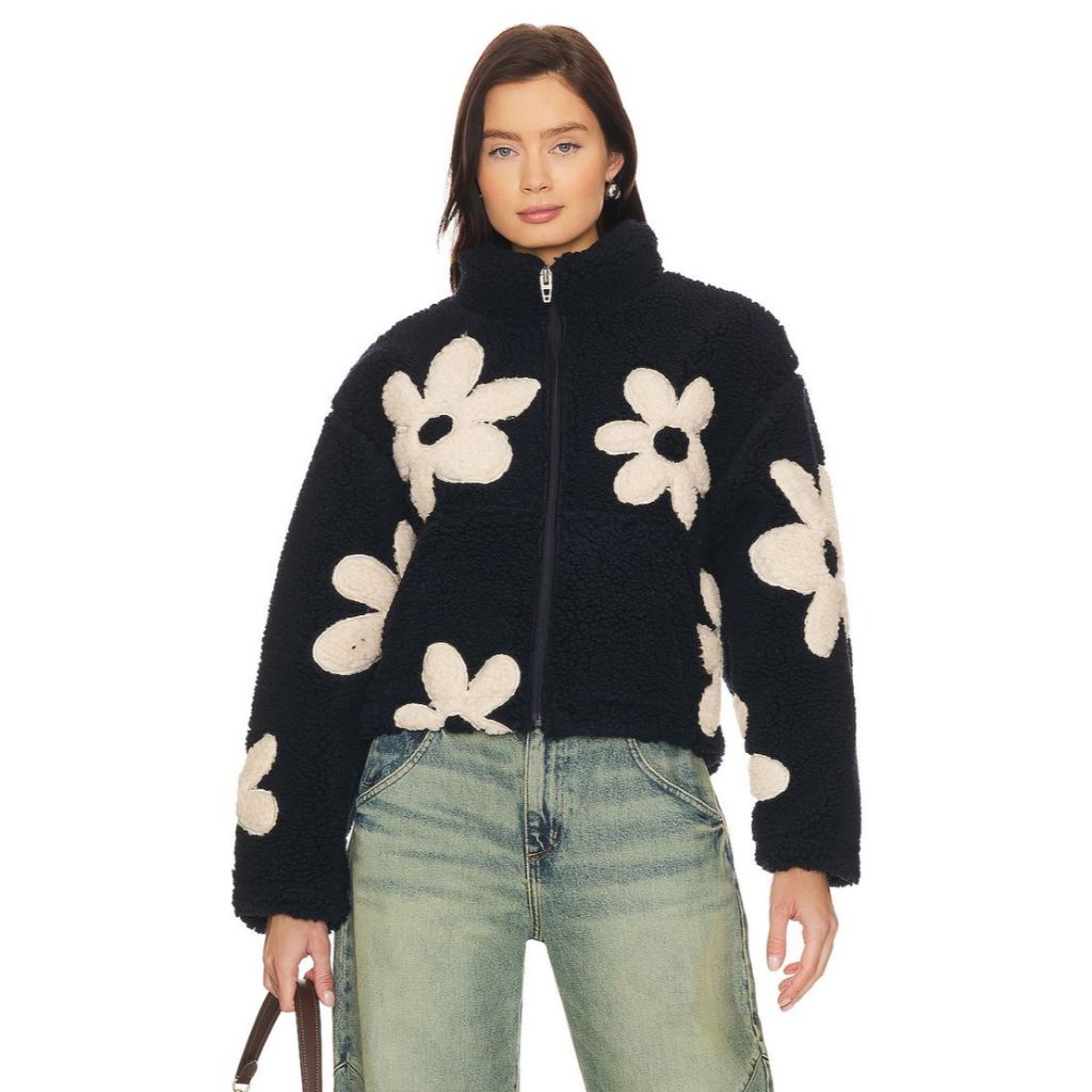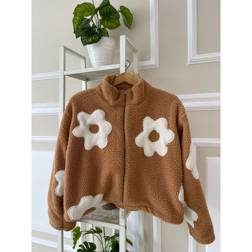 SWEATER JAKET ZIPPER KERAH FLOWER CROP SHERPA BULU DOMBA
