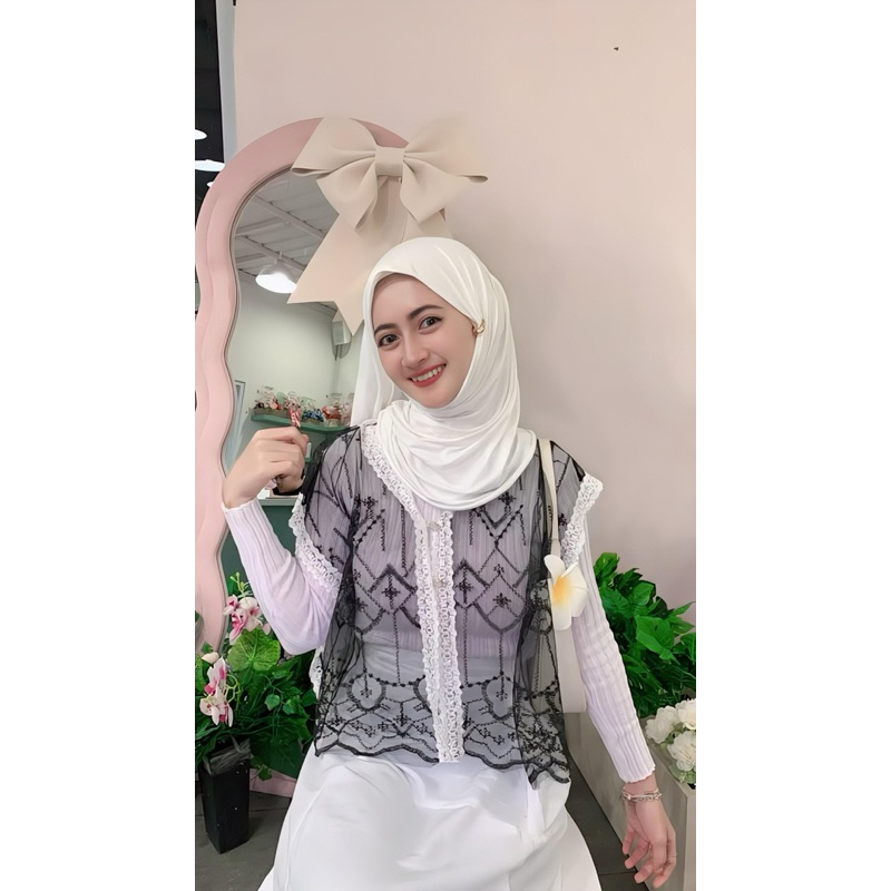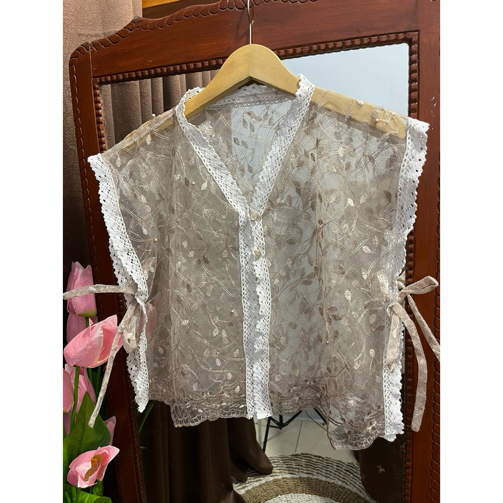 VEST BERUKAT RENDA KECIL MEWAH KERAH V BUNGA