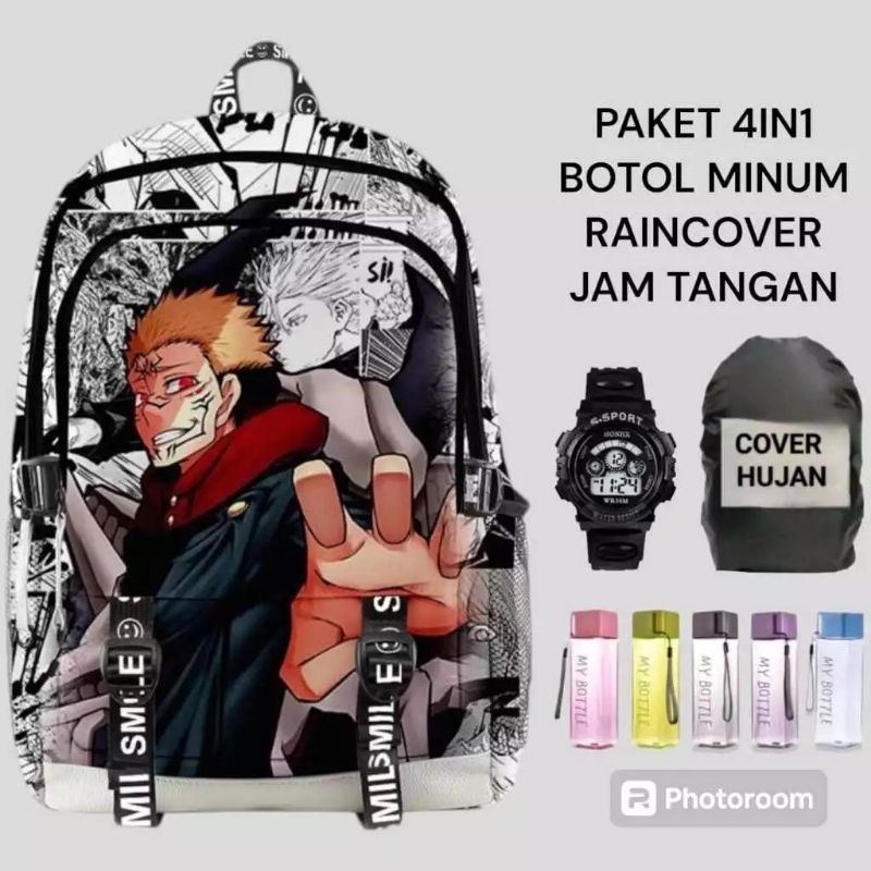 PAKE MURAH 4IN1 Tas Ransel Sekolah Anak Laki Laki SD SMP Karakter ANIME GOJO Kartun