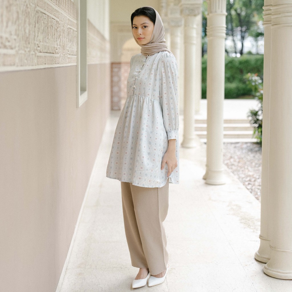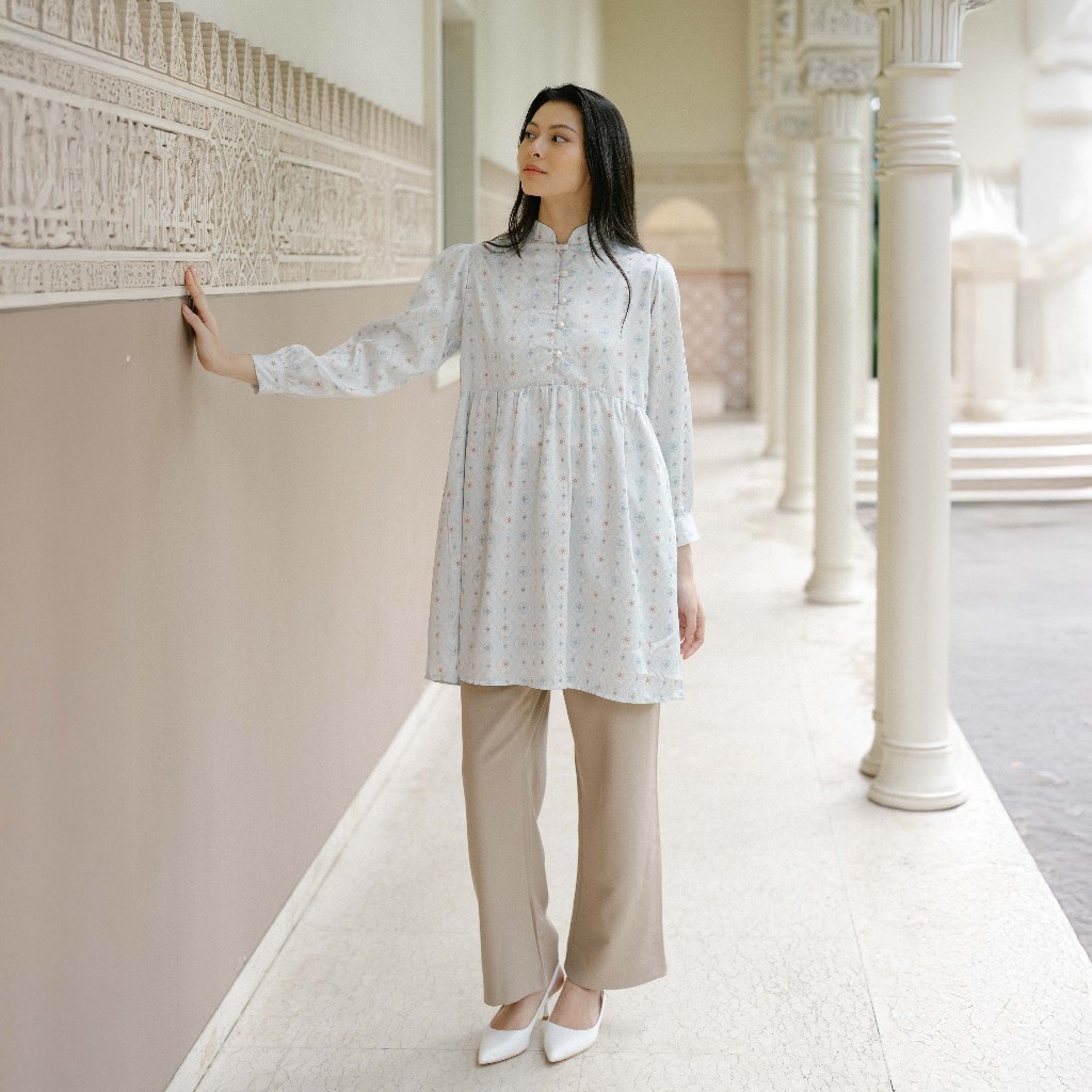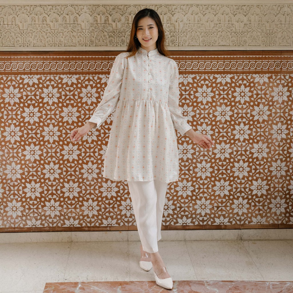 BEATRICE CLOTHING ADARA DRESS - DRESS WANITA MOTIF LEBARAN LENGAN PANJANG KERAH KOKO