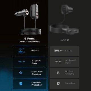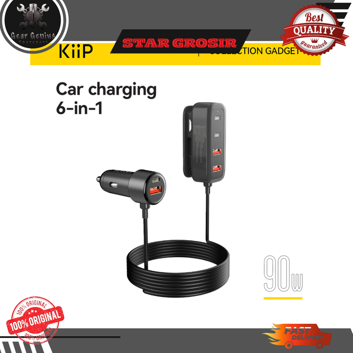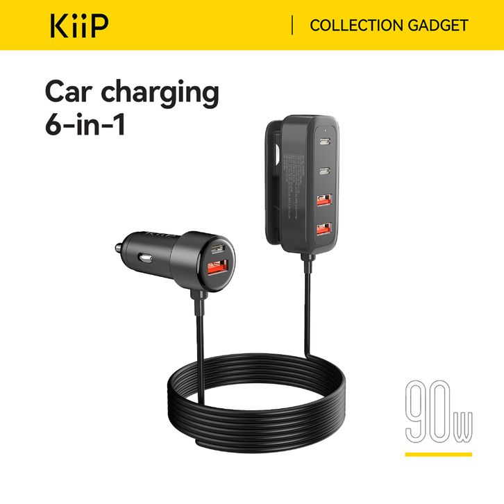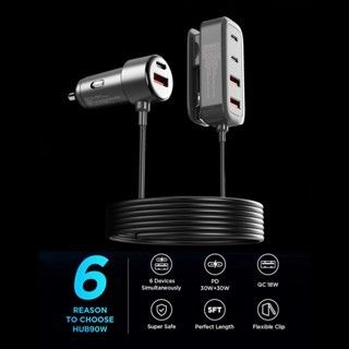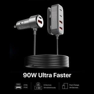 Car Charger Mobil 90W Ultra Fast Charging 6 Ports Type-C USB Adapter PD QC
