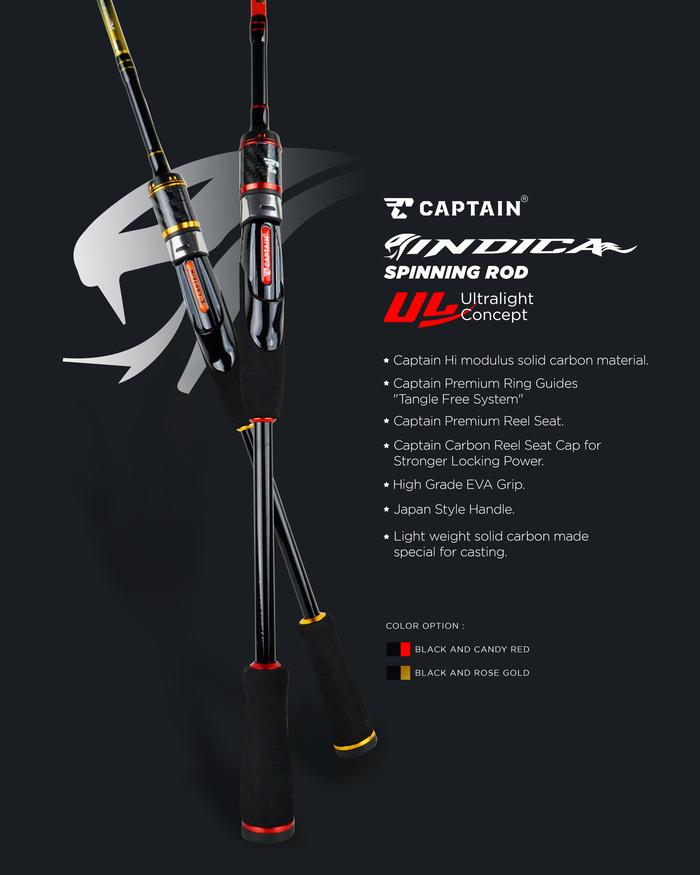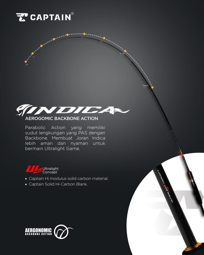 Joran Pancing, Joran Captain Carbon INDICA UL, X - Carbon, 1,98m 2,10m, 2-6lbs Japan Style Handle