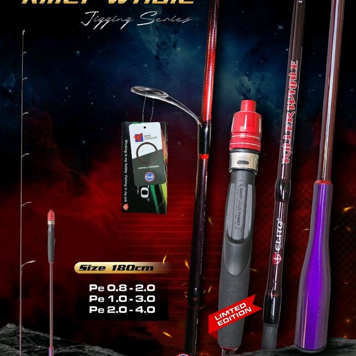 joran jigging elito killer whale p180 solid carbon spining reel set dan ring full fuji