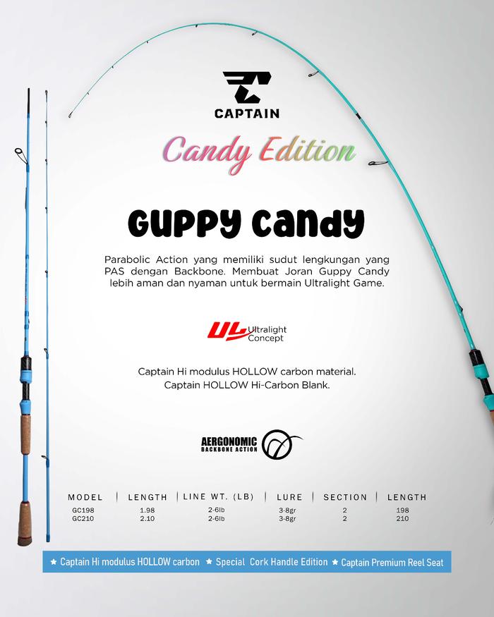 Joran Pancing, Carbon Hollow Captain GUPPY CANDY UL X 24T, 198cm, 210cm, 3 Warna, BONUS PAPER CORE