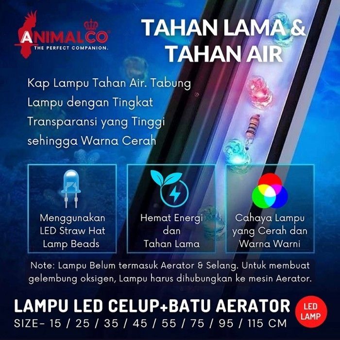 TERMURAH Lampu Aquarium LED Celup Batu Gelembung Udara Aerator Airator Air Stone 3 Warna Akuarium Aquascape Ikan