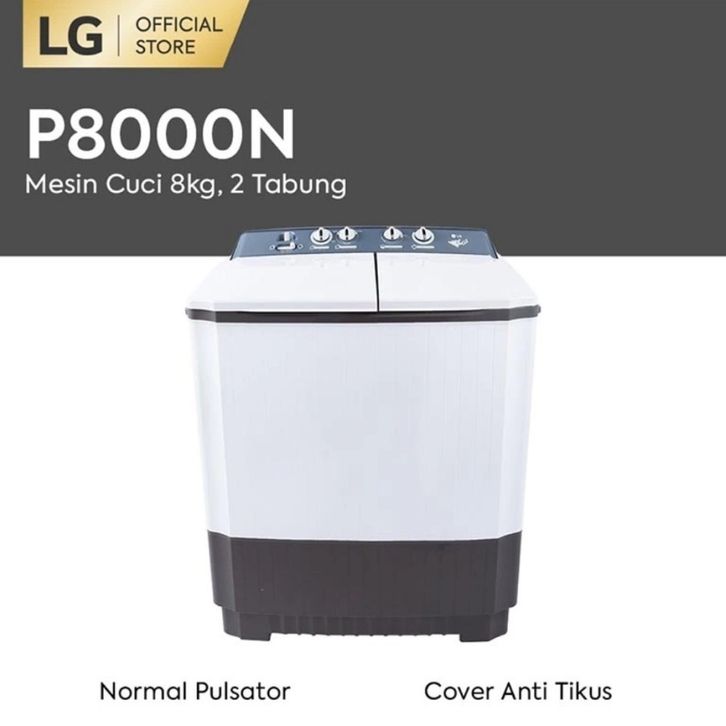PROMO Mesin Cuci 2 Tabung LG P 8000 N / P8000N Kapasitas 8 Kg ORIGINAL