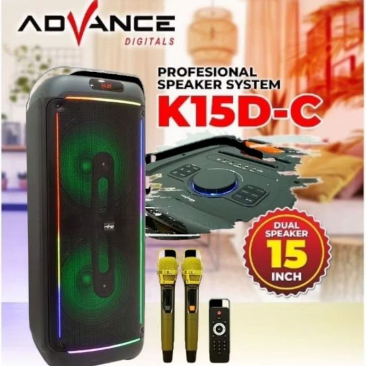 PROMO Speaker Portable Advance K15D C / K15DC 15 Inch x 2 FREE 2 Mic Wireless ORIGINAL