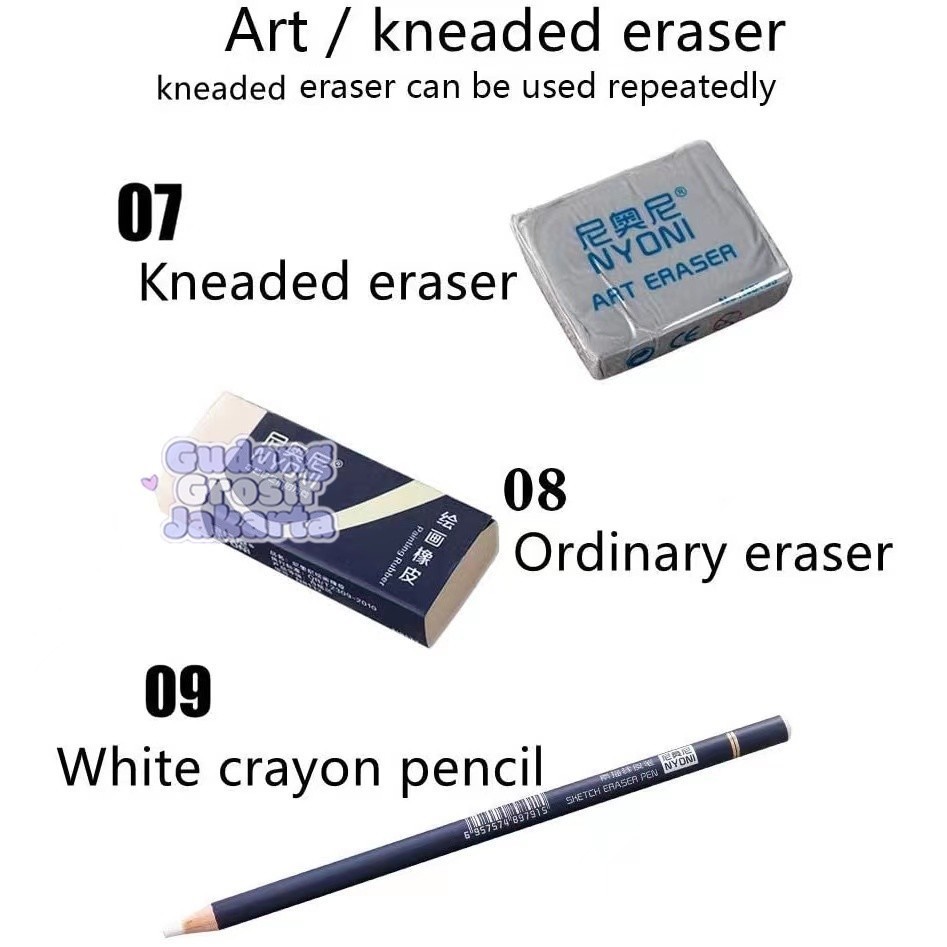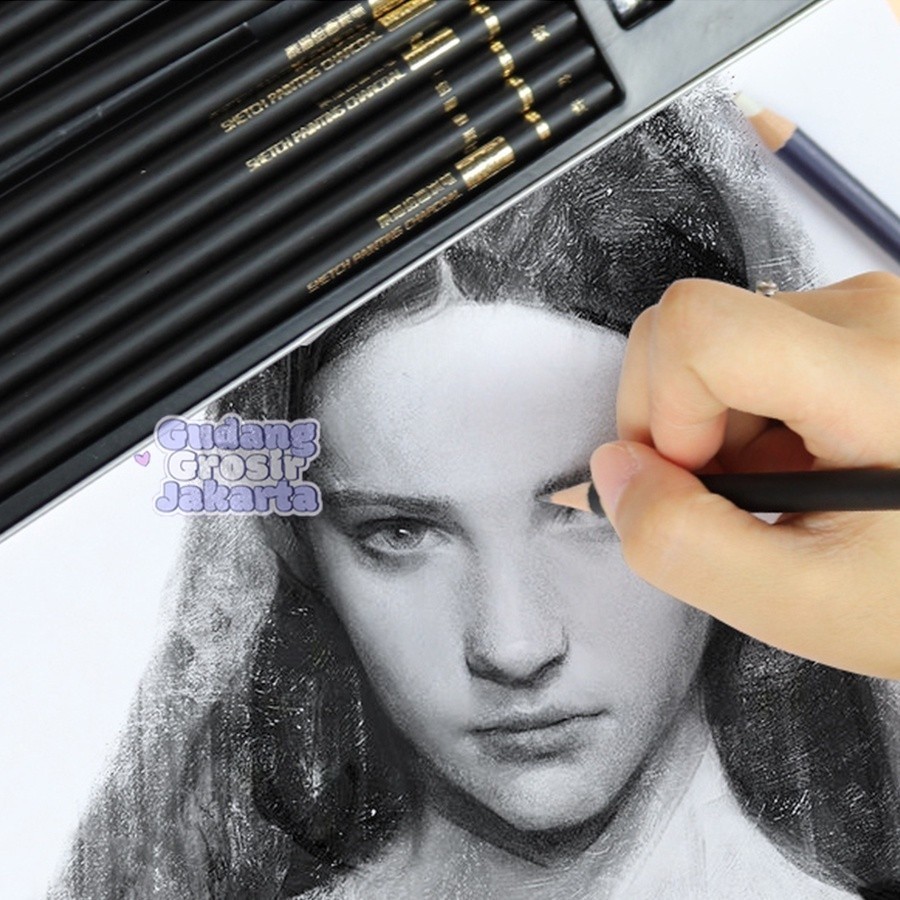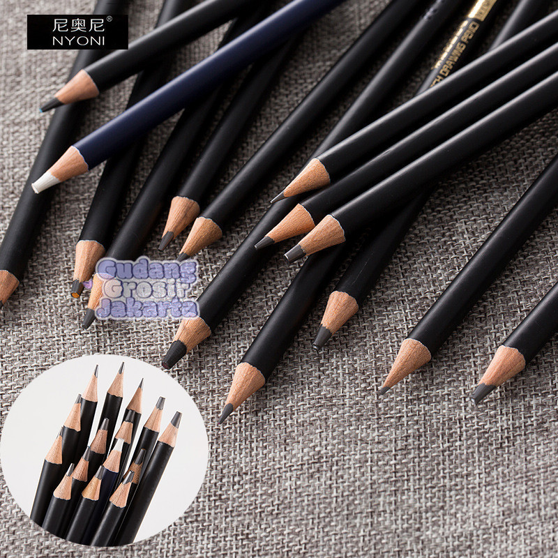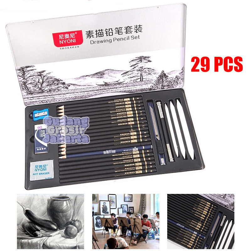 Nyoni Drawing Pencil Gambar Set 29pcs Metal Tin Box Pensil Gambar Lukis Sketsa Lengkap Paket