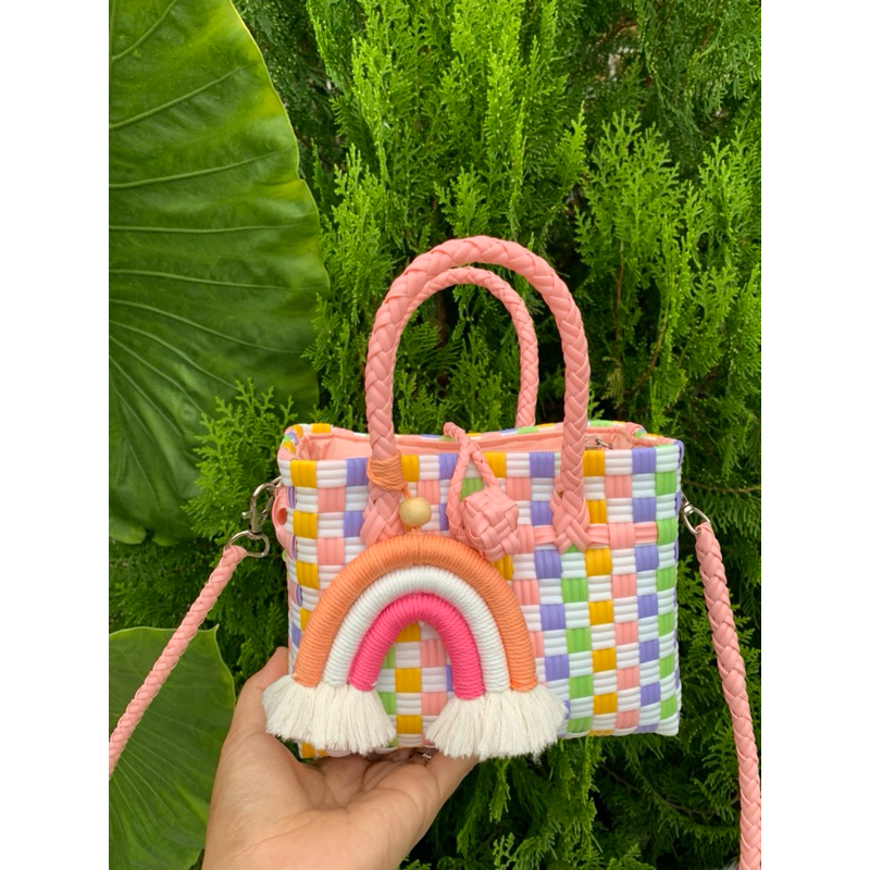 [Mall] SUPER MINI RESLETING FURING TAS SELEMPANG WANITA TAS ANYAMAN PLASTIK SLING BAG TAS HP