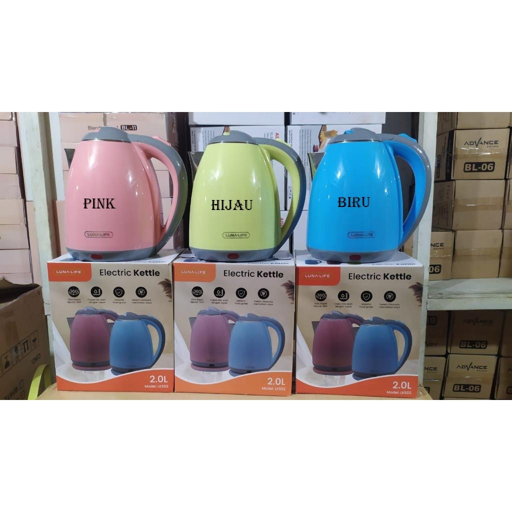 LUNALIFE Teko listrik LK502 Kapasitas 2L Pemanas Air 3 Warna Elektrik Kettle 500 Watt Daya Rendah LUNA