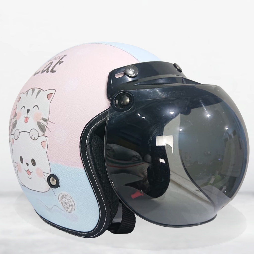 Helm Bogo Retro Kulit Dewasa/anak-anak Cat Lovers Murah Free Tambah Nama