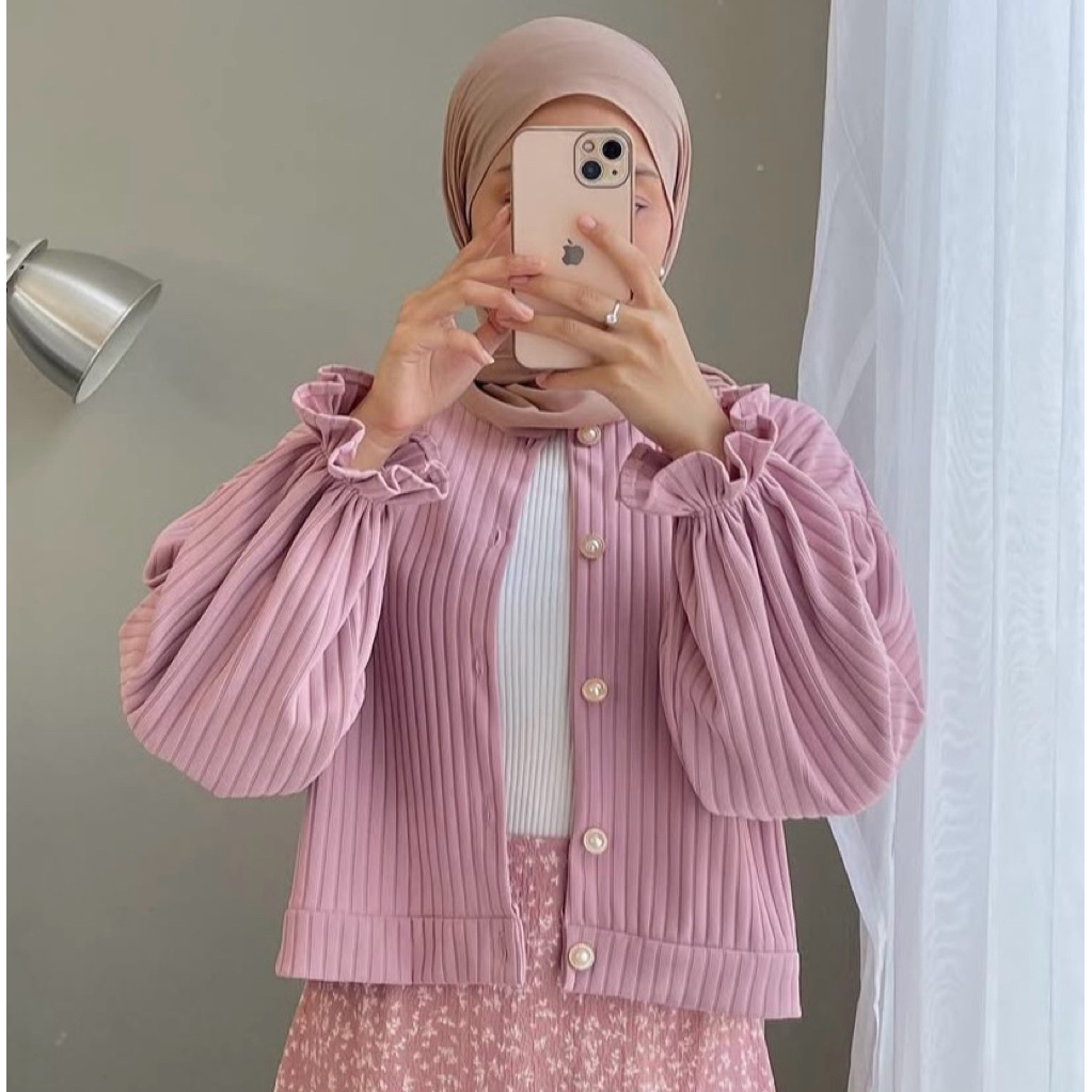CARDIGAN CROP T0P HORNET KANCING LENGAN PANJANG KERUT BALON WANITA KNIT CARDIGAN PUFFY ALIA