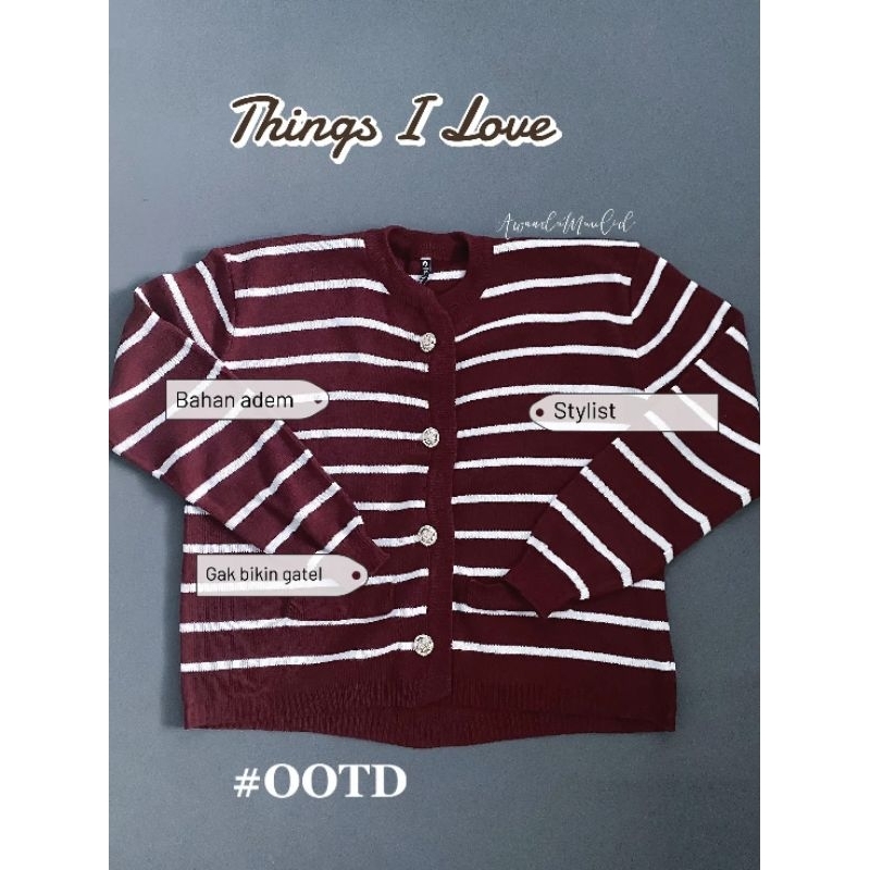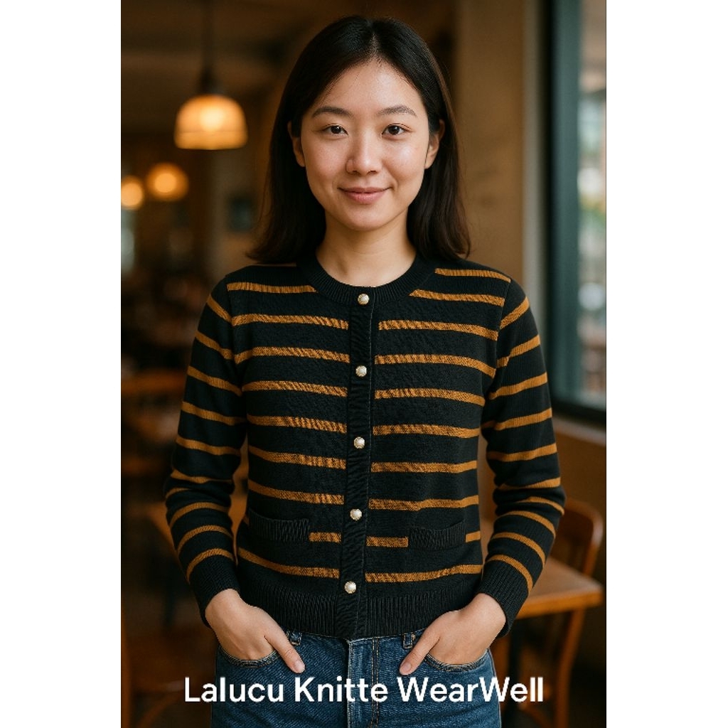 CARDIGAN RAJUT KOREAN LALUCAU - GARIS-GARIS ALL SIZE