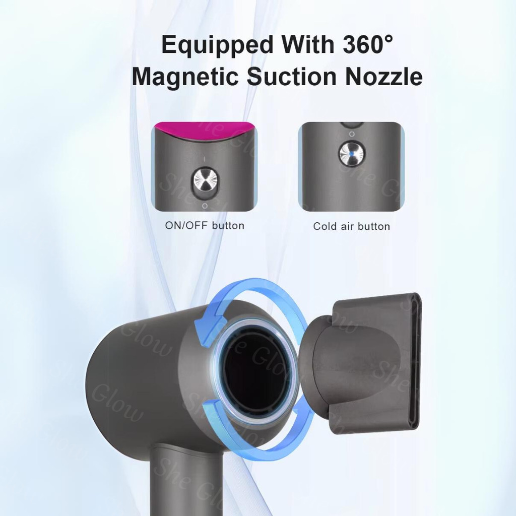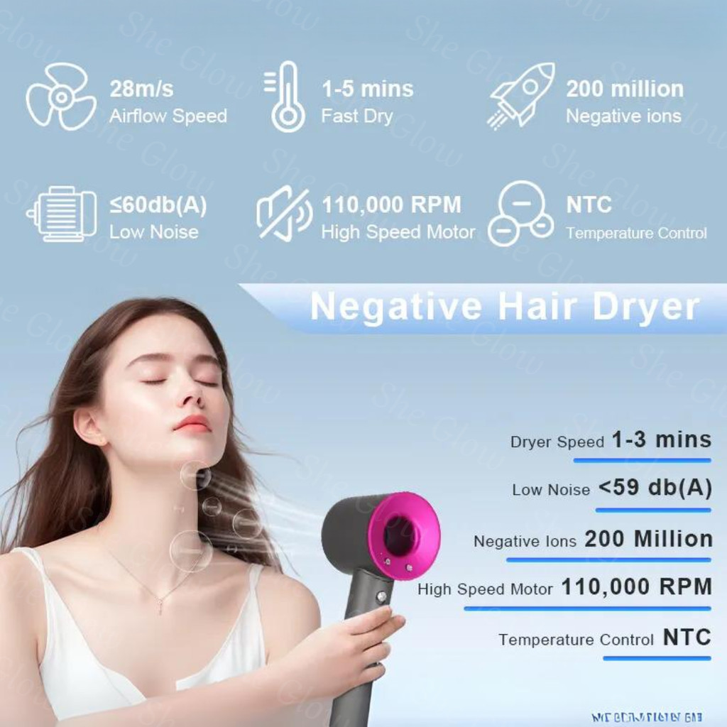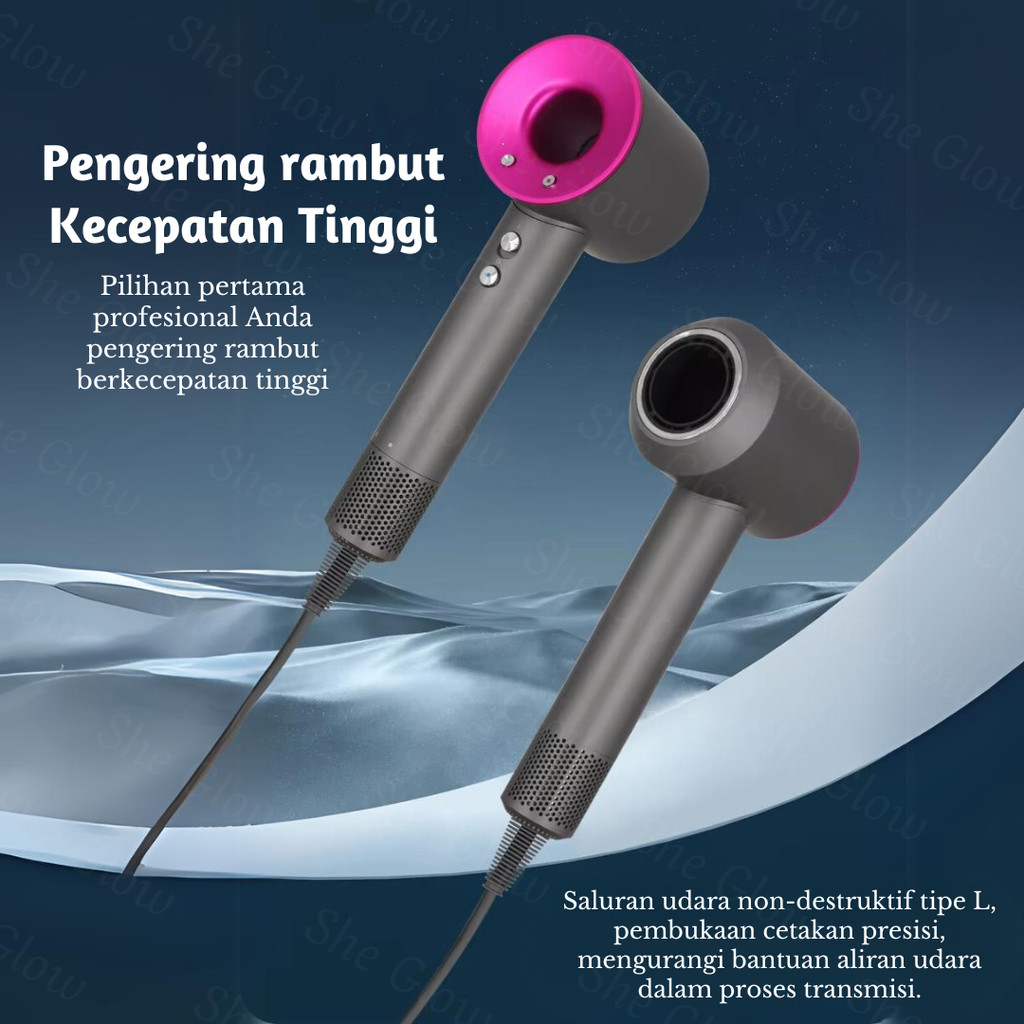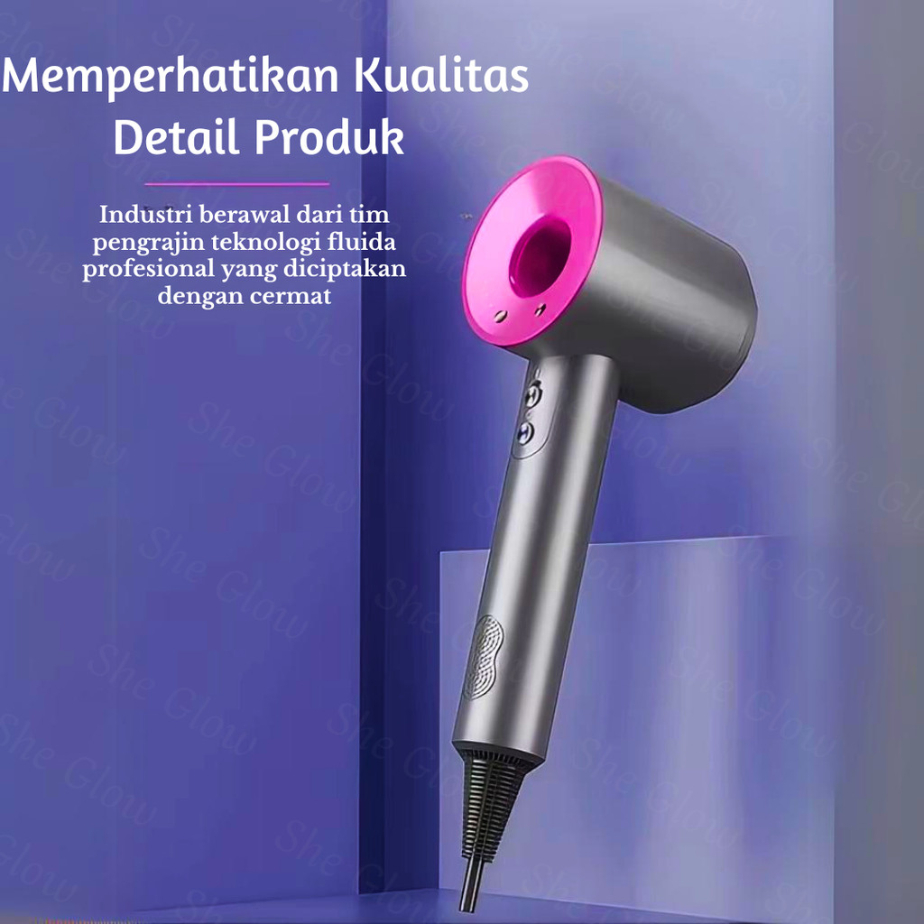 PROMO She Glow (GARANSI 1 TAHUN) Hair Dryer Salon Profesional 1600W dengan 5 IN 1 Lima Aksesoris Perawatan Rambut Ion Ne