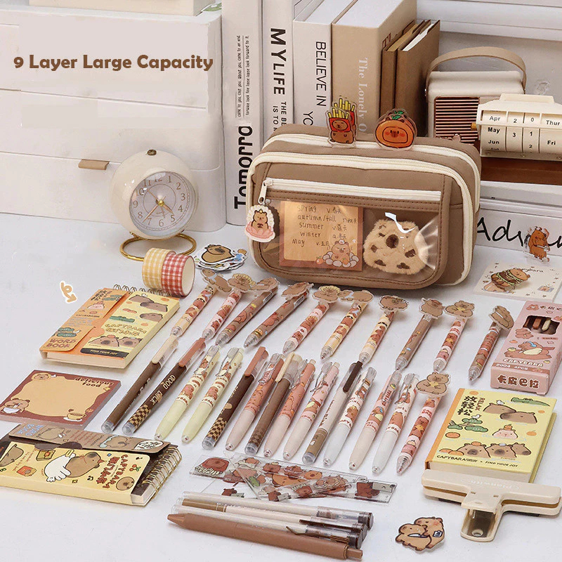 Capybara Tempat alat tulis kotak pensil aesthetic Tas PenaTempat Pencil Tas Pensil kapasitas besar