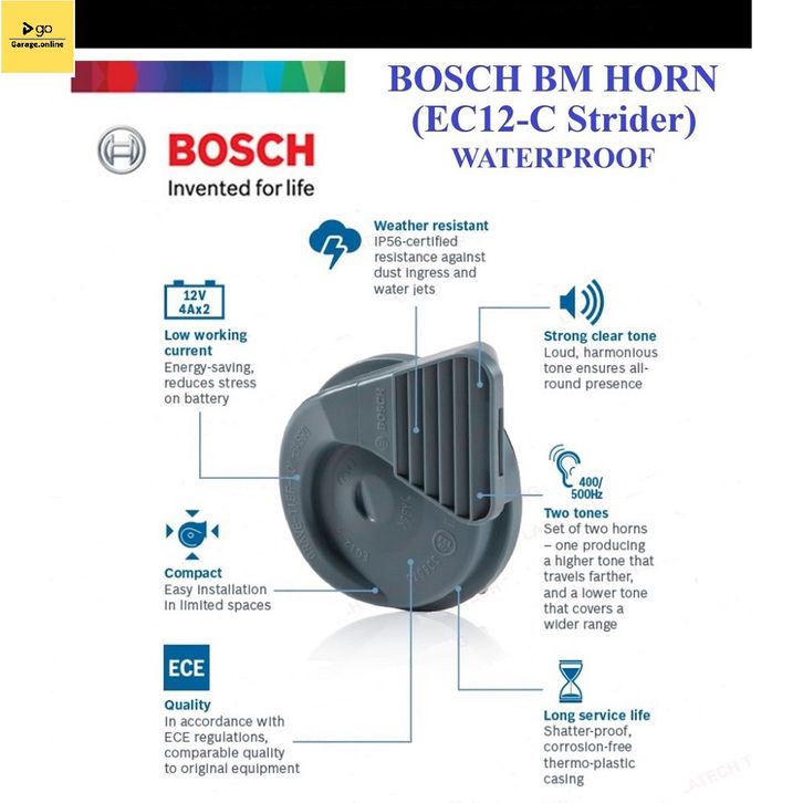 Klakson Keong Bosch Strider EC12-C Waterproof Anti Air 12V Untuk semua Mobil dan Motor Original