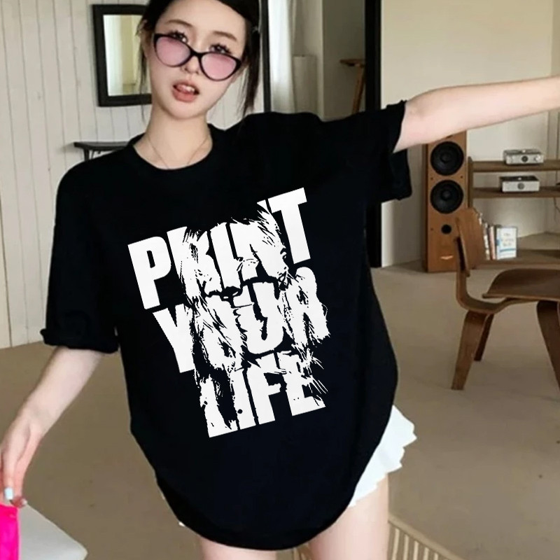 Lovful - Atasan kaos wanita terbaru 2025 | Kaos oversized casual | Kaos Sablon Letters | Kemeja blouse wanita korean style