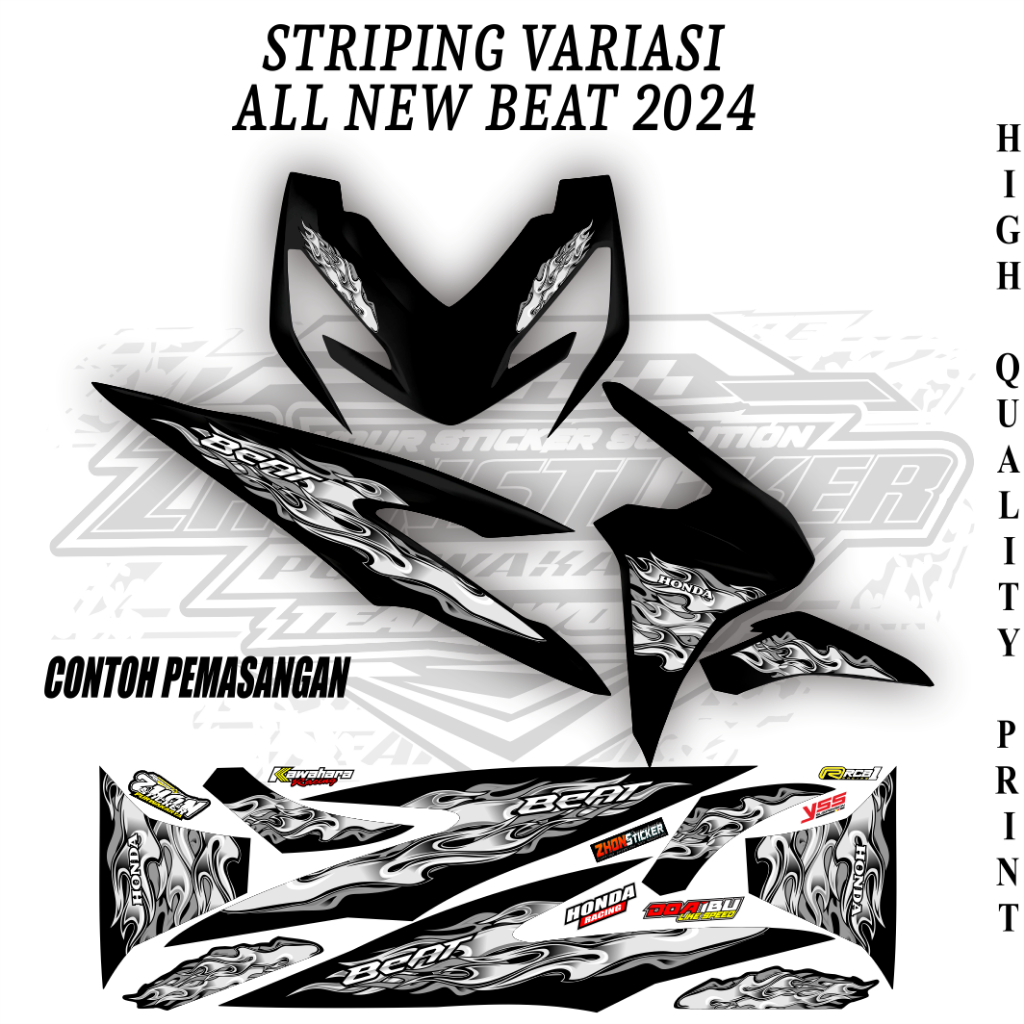 Striping Variasi All New Beat Deluxe / Street 2024 Sticker Motif Api Terbaru List Polet Bodi Motor
