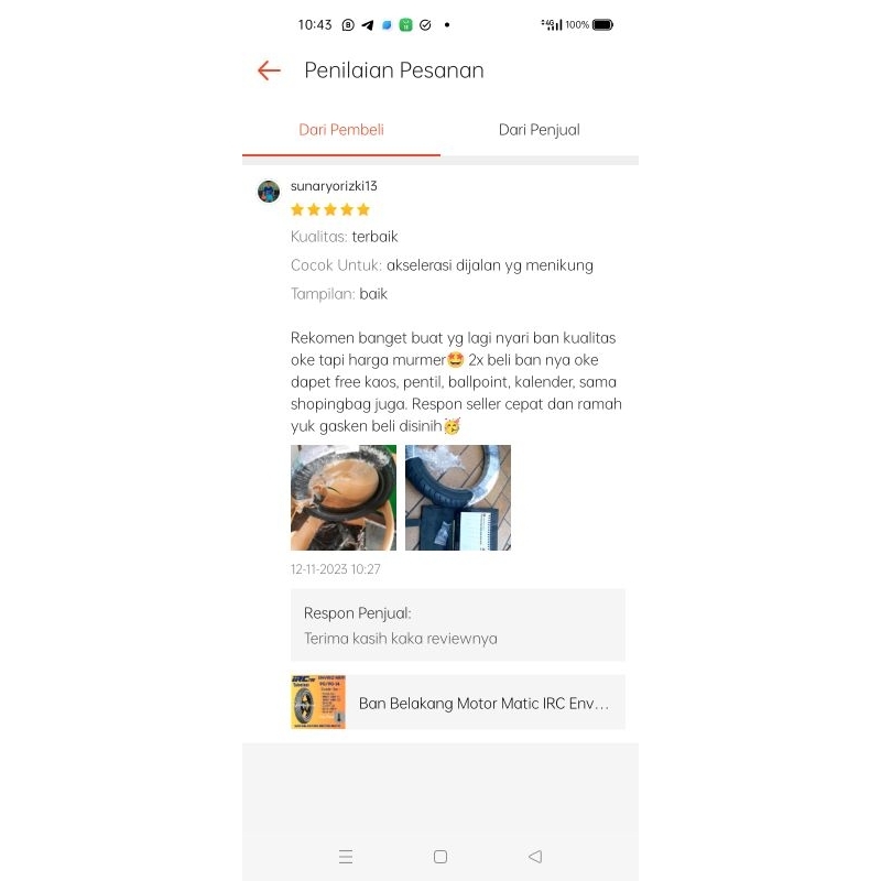 Ban Belakang Motor Matic IRC Enviro 90 90 Ring 14 Tubeles Free PNTL Tahun 2025