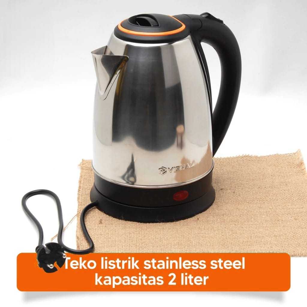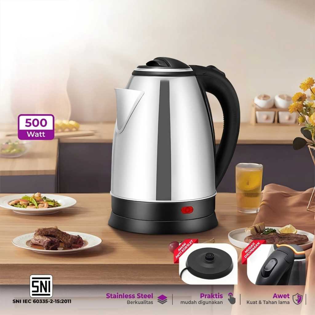 Teko Listrik 2 Liter Full Stainless Steel Pemanas Air Electric Kettle Ketel Besar Otomatis Portable