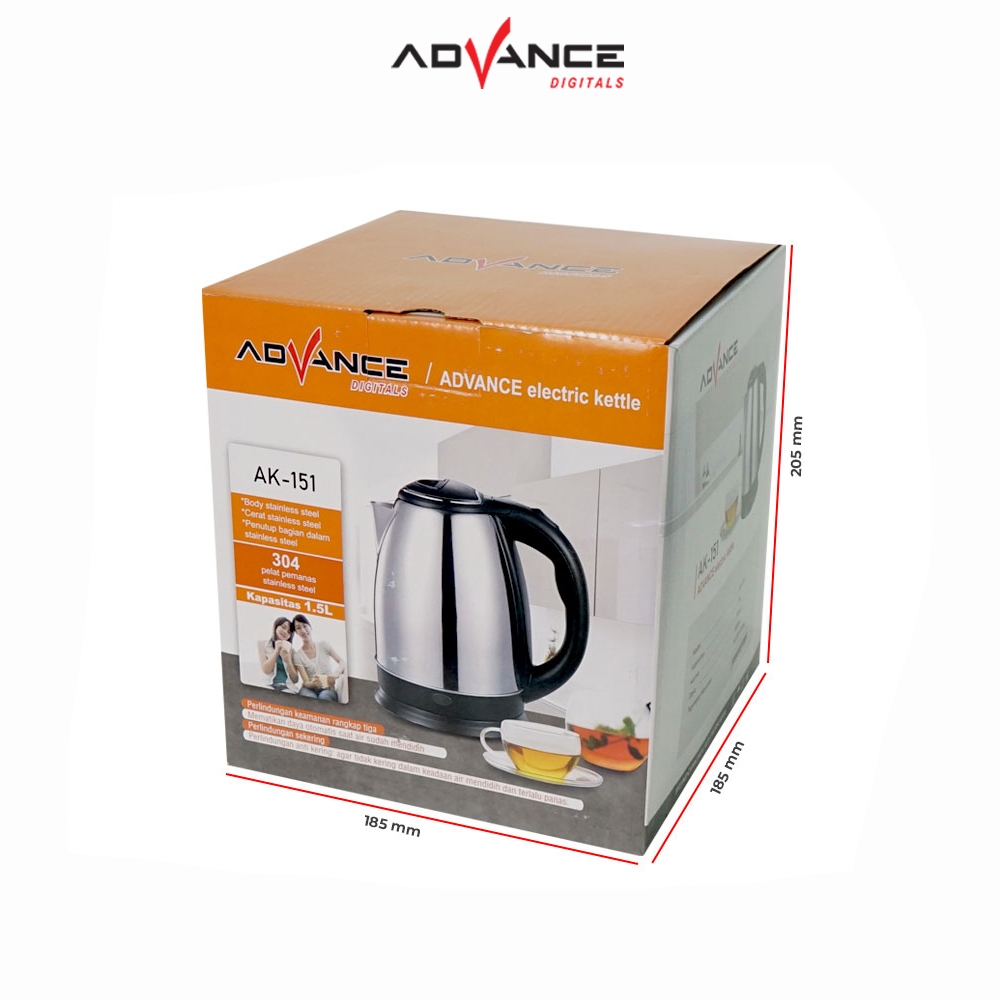 Advance Teko Listrik Stainless Steel AK-151 kapasitas 1,5 liter daya 500 Watt Garansi 1 Tahun