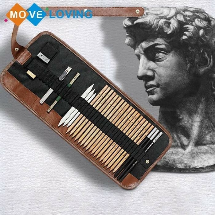 set 29 pensil sketsa gambar sketch drawing pencil free pouch exclusive