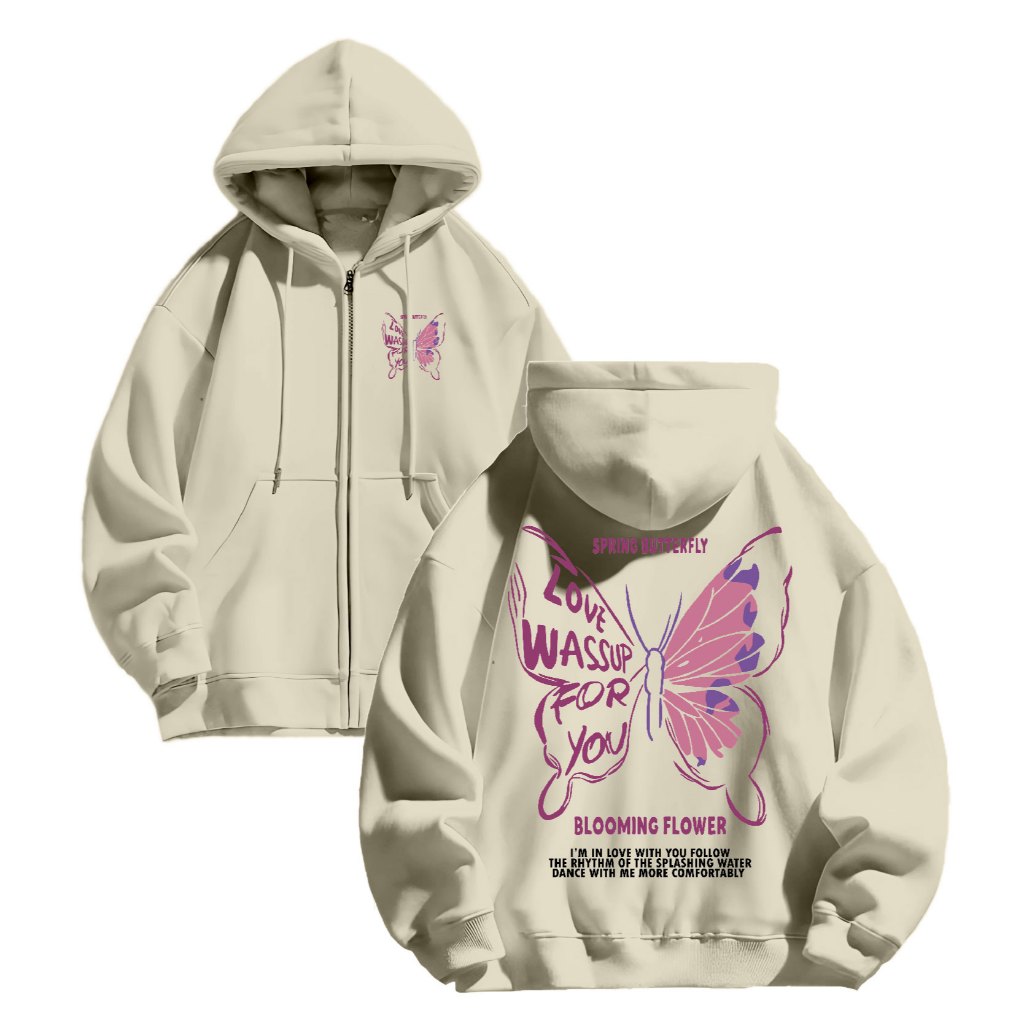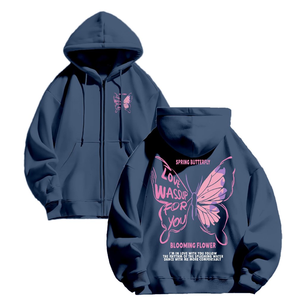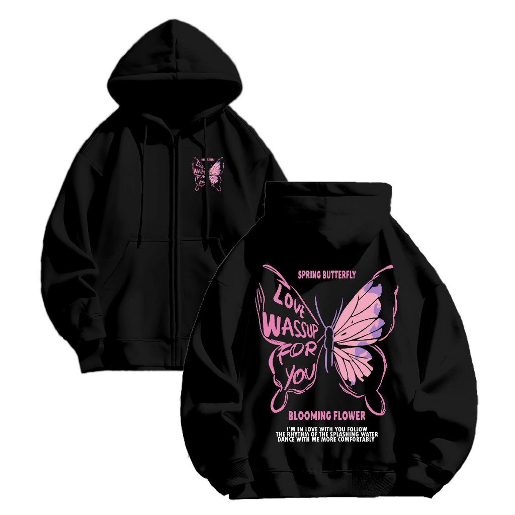 BUNZ HOODIE ZIPPER JAKET SPRING BUTTERFLY [SABLON DTF] SIZE M-XXL UNISEX ( PRIA & WANITA )
