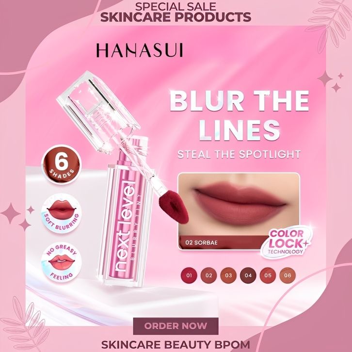 Hanasui Next Level Blurry Tint Liptint Watery To Blur Lightweight Tahan Lama Velvet Finish Powdery Best Seller Termurah
