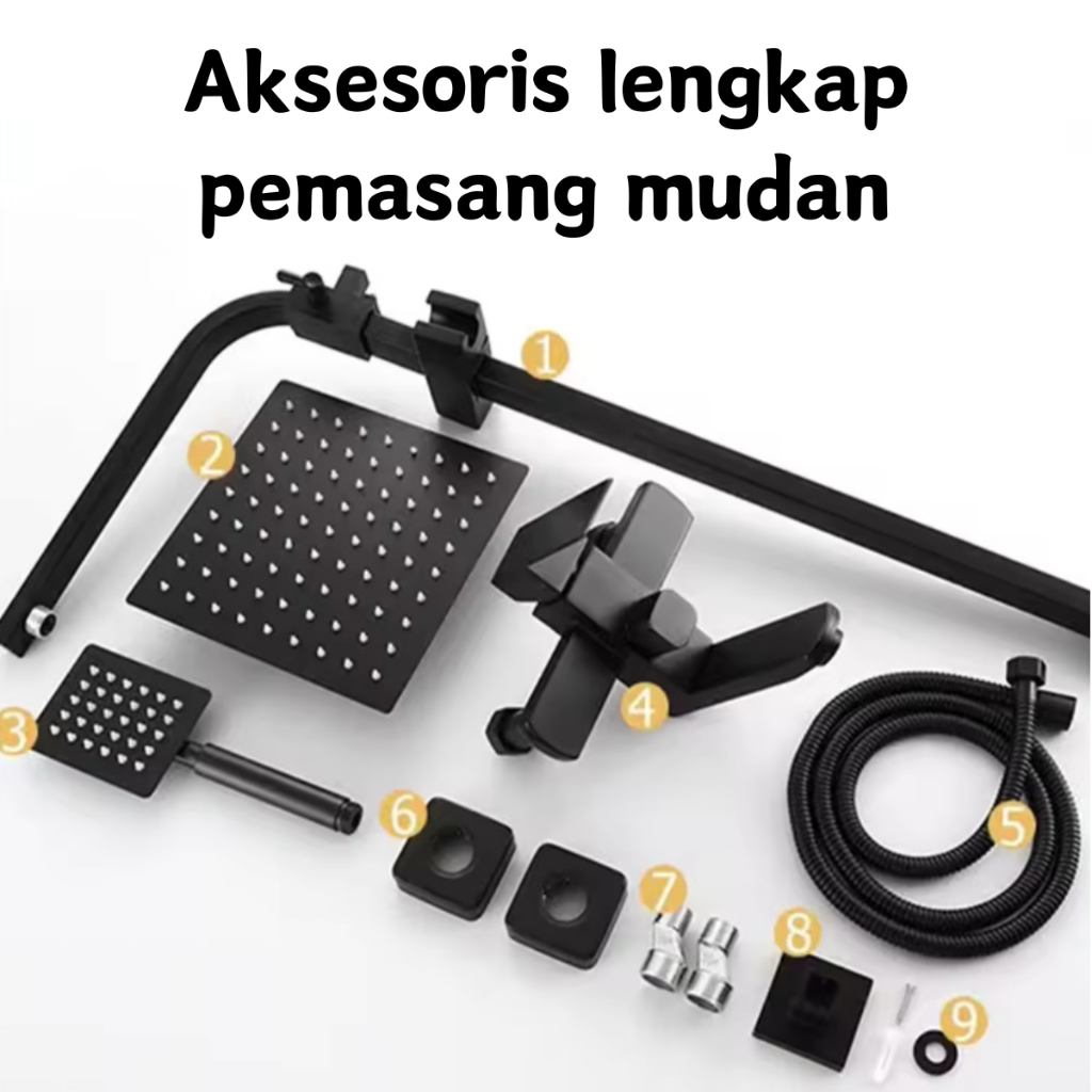 Shower Kamar Mandi Full Set 304 Stainless Steel Panas Dingin Persegi - Shower MuRAH LENGKAP
