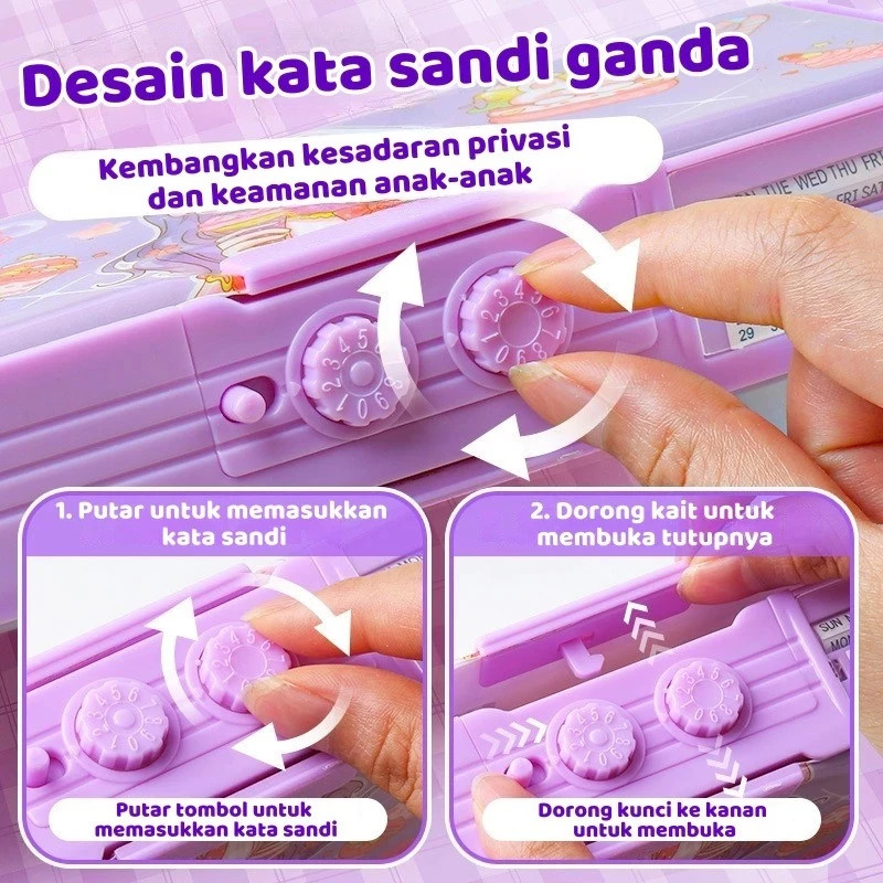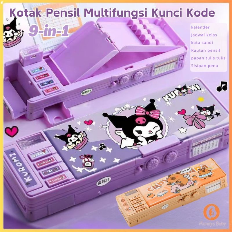 [Penjual Lokal] 9-in-1 Kotak Pensil Multifungsi Kunci Kode Kuromi / Bahan Tahan Air Tempat Pensil Password / Lapis Ganda Berkapasitas Besar Lucu Tempat Pensil Anak Perempuan