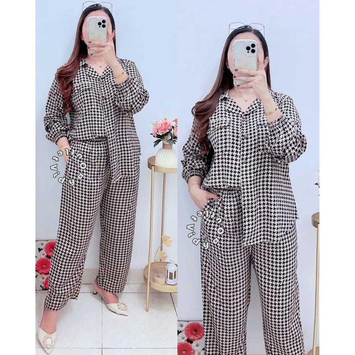 VIDYA - Setelan Hons 3976 - Stelan Wanita Kancing - Saku Hidup - Motif Honstood - Set Hamil - Busui Friendly