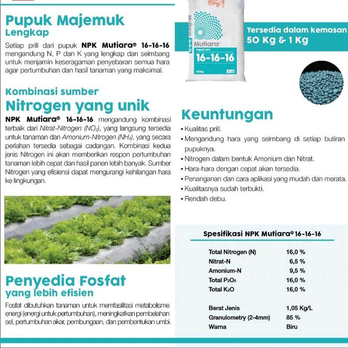 Pupuk NPK Mutiara 16 16 16 Meroke K3m45an Biru Original Pabrik isi 1kg Tanaman Bunga Buah Daun jadi Hijau Subur