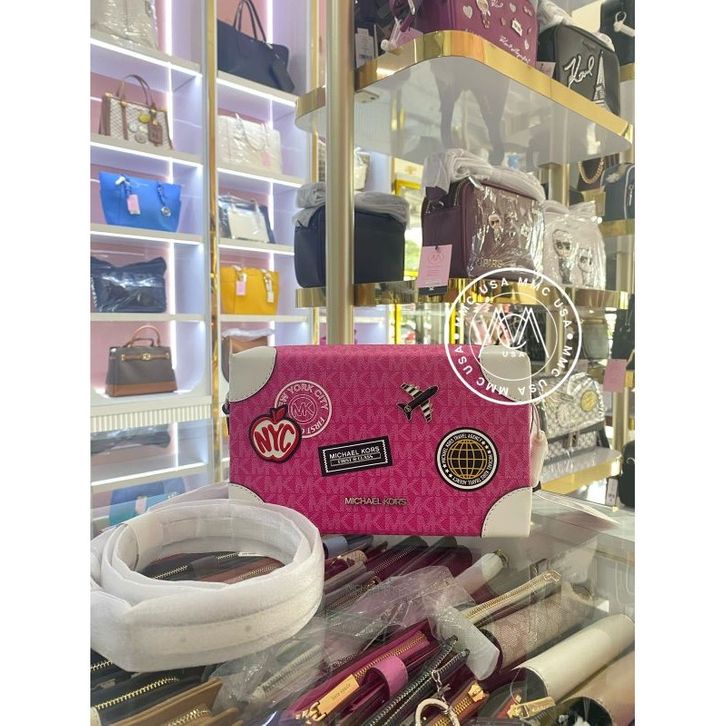 MK JEANIE FLIGHT TRUNK CROSSBODY PATCHES