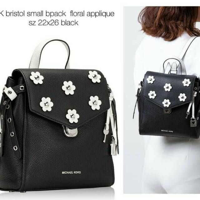 Tas MK Bristol small backpack floral applique black 22x26x8cm
