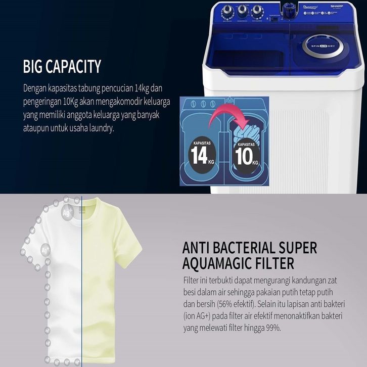 PROMO Mesin Cuci Sharp ES T1490WA / EST1490WA Mesin Cuci 2 Tabung 14Kg ORIGINAL