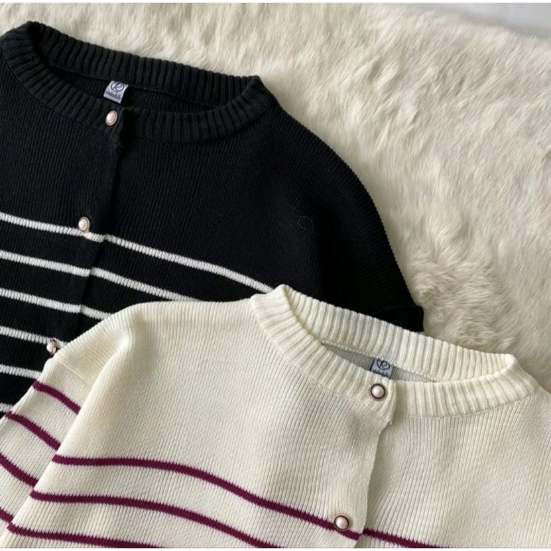 RRC CARDIGAN RAJUT KANCING MUTIARA PREMIUM STRIP