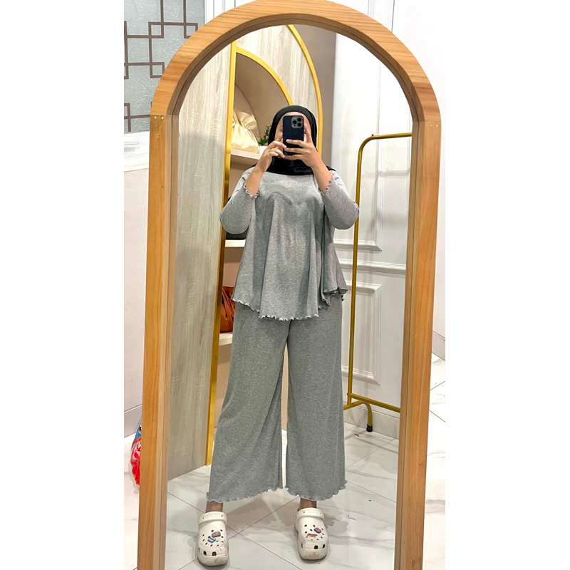 ATACHI SETELAN RIB KNIT WANITA LENGAN 7/8 CELANA PANJANG BAJU ATASAN SETELAN WANITA DEWASA POLOS DENACOLLECTION