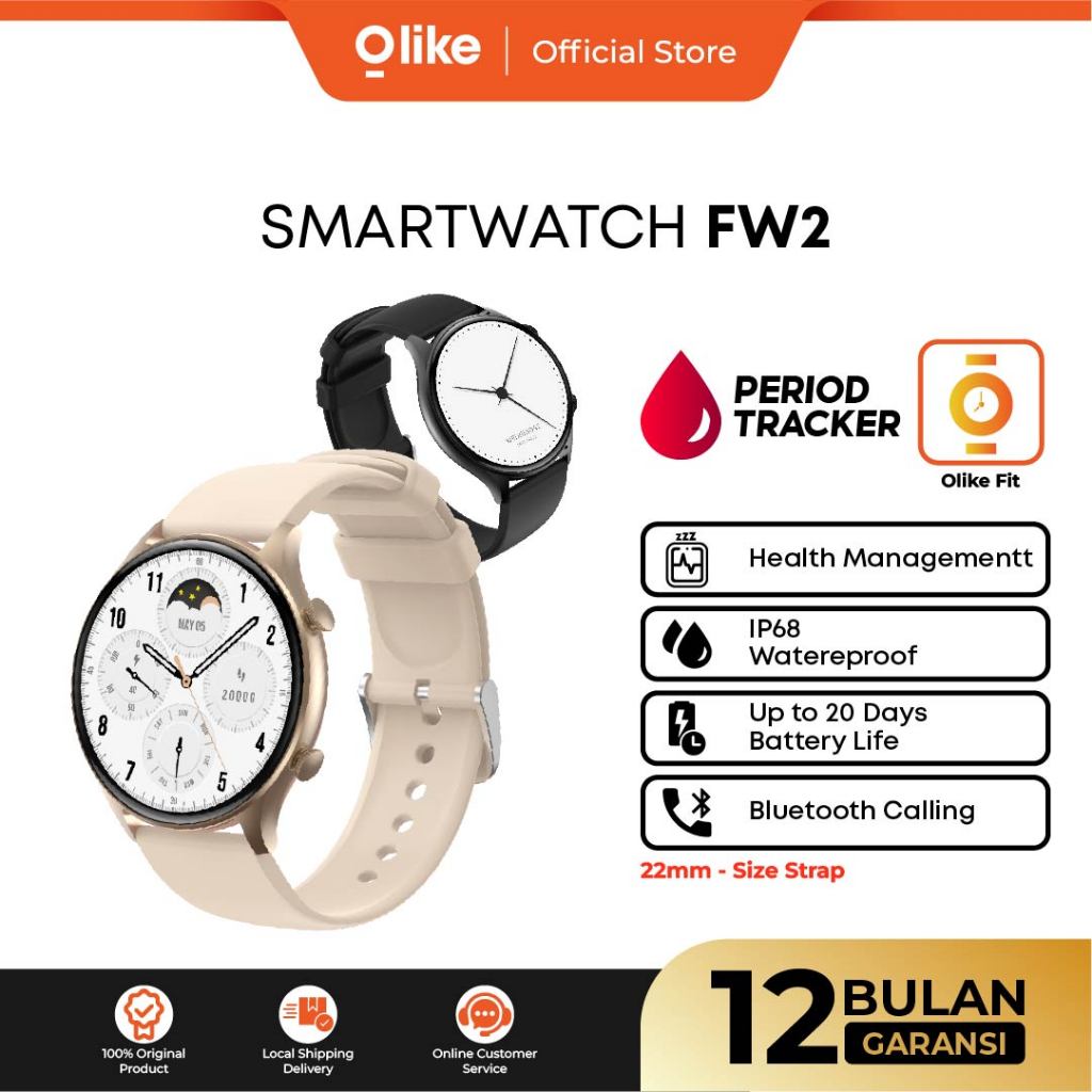 OLIKE Jam Tangan Smartwatch FW2 1.39 Inch Strap 22mm + Bluetooth Call | Jam Tangan Pria / Wanita Water Resistant IP68