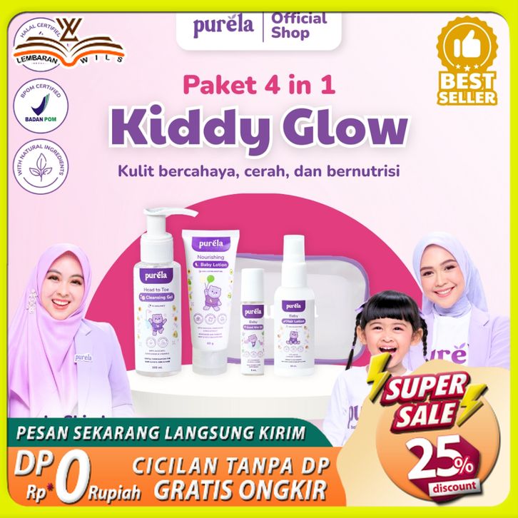 PURELA Paket 4in1 Kiddy Glow Skincare Free Pouch - Perawatan Pencerah Kulit Bayi Anak - Bahan Alami